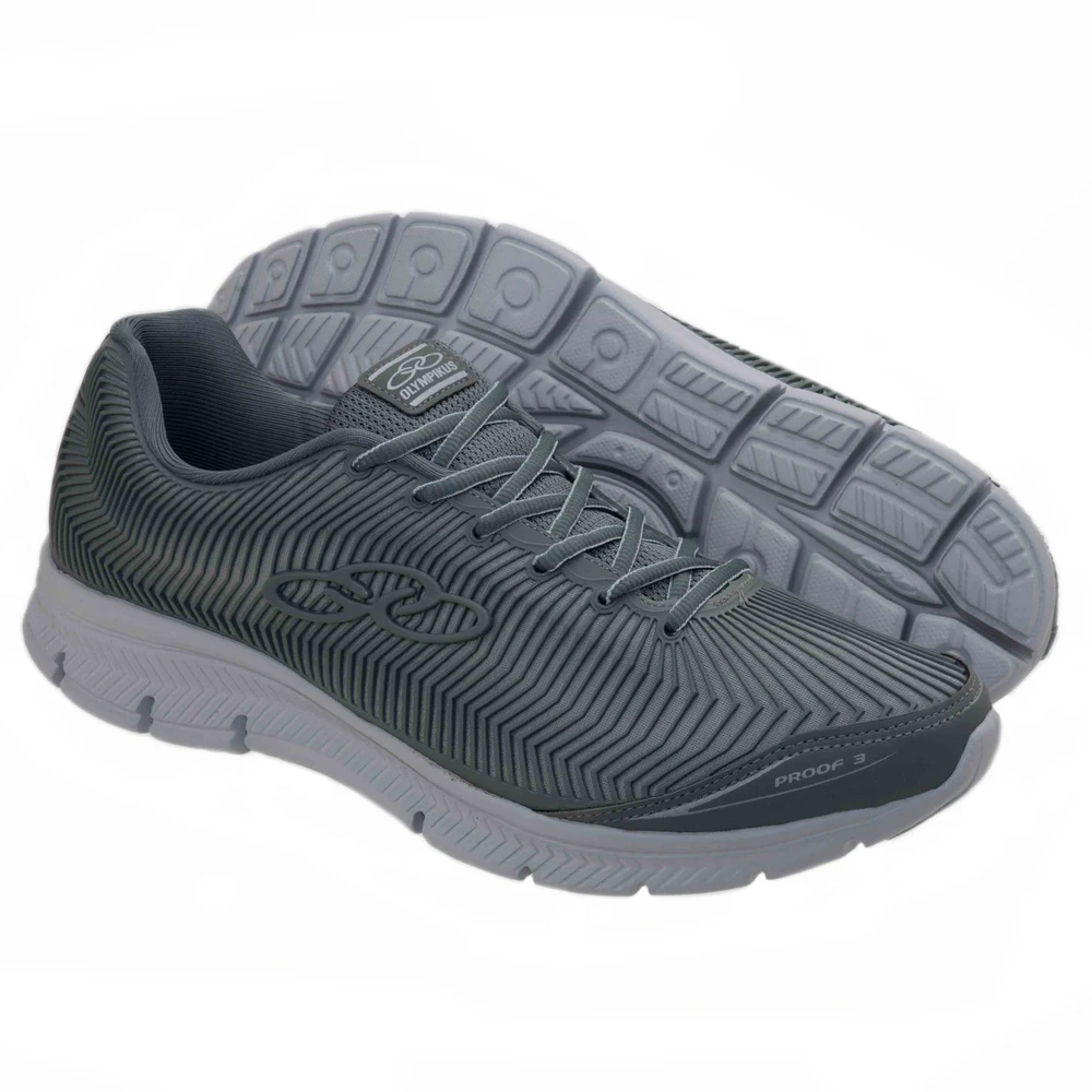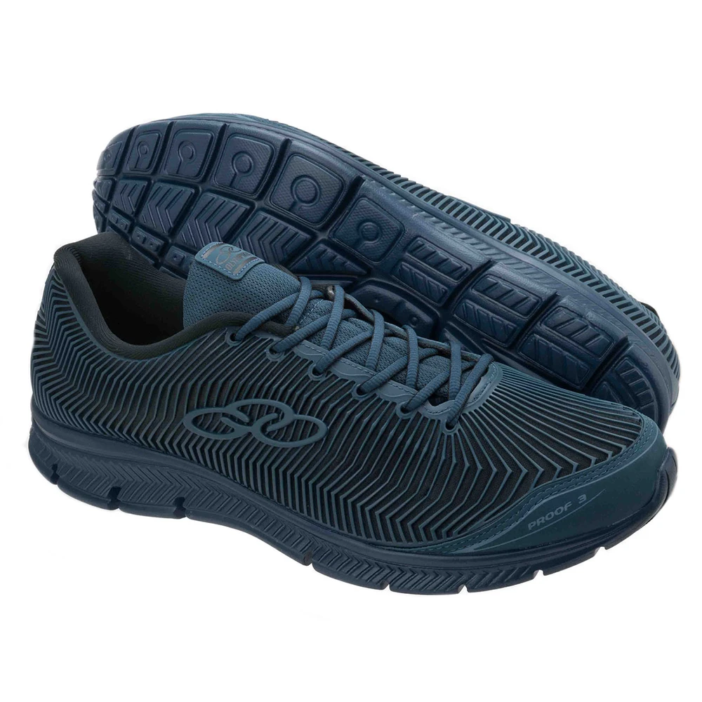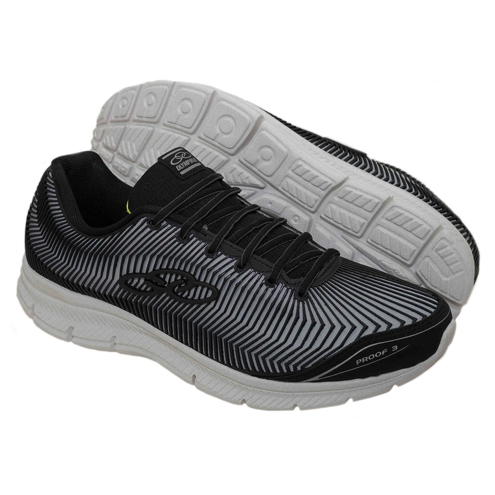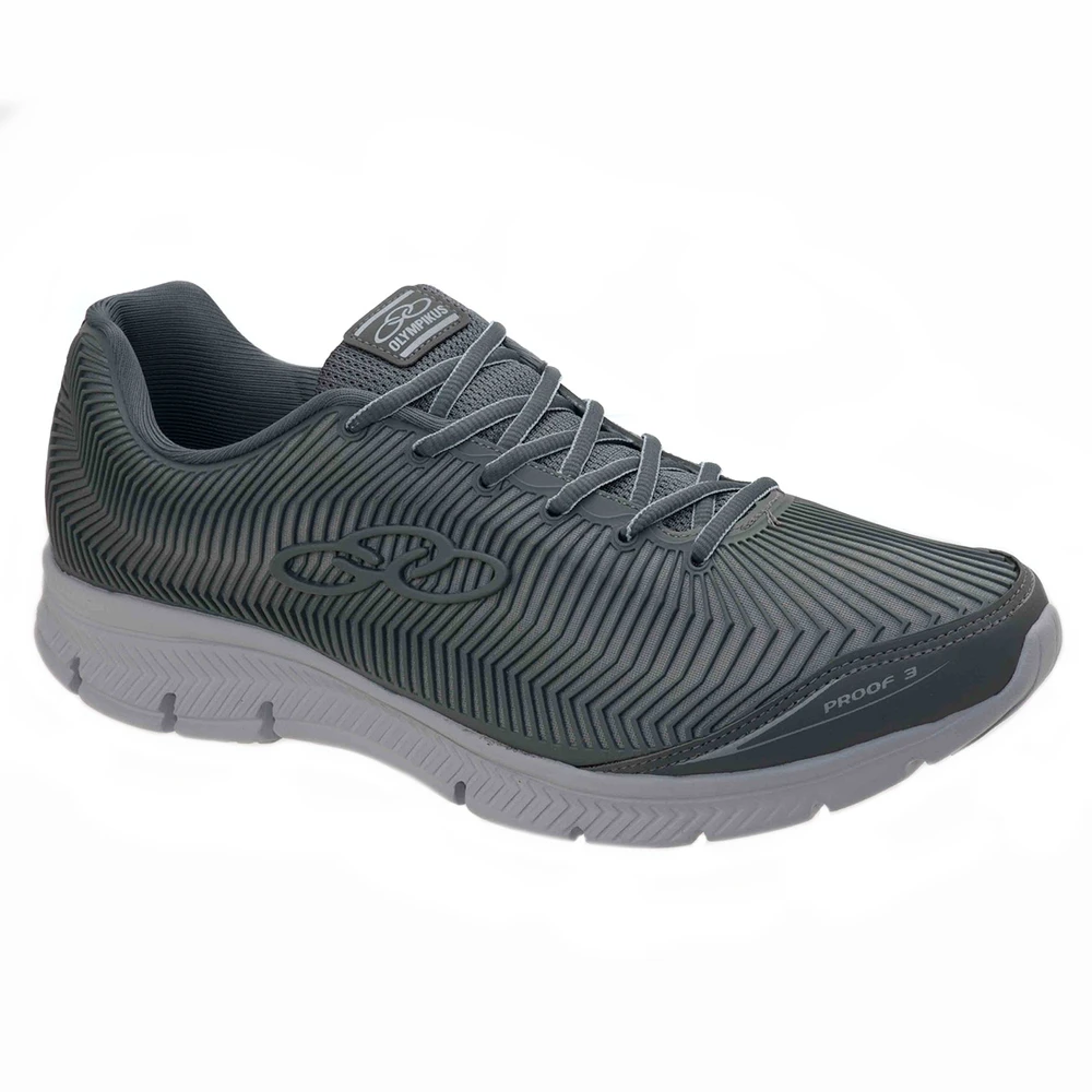 O Olympikus Proof 3 é o tênis ideal para quem busca conforto e alta durabilidade. Seu solado possui design com recortes verticais, que aumentam a flexibilidade, além da tecnologia de amortecimento Evasense, que proporciona leveza e maciez para os corres diários. O cabedal é confeccionado em tecido de poliéster, com a tecnologia Covergrid, o seu material é injetado diretamente no tecido, proporcionando maior proteção, resistência e durabilidade. Possui ainda forro com espuma e atacador bicolor, ambos compostos por tecido poliéster texturizado.