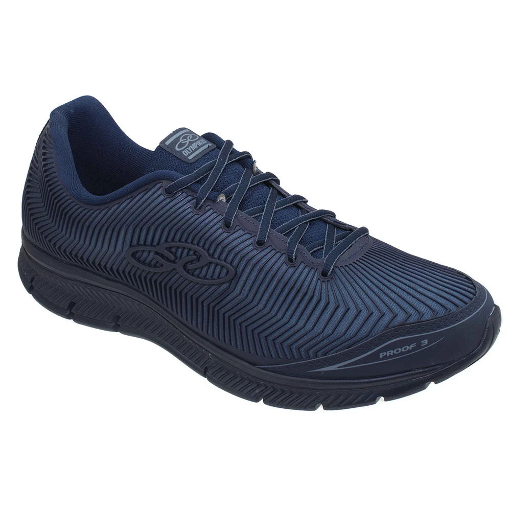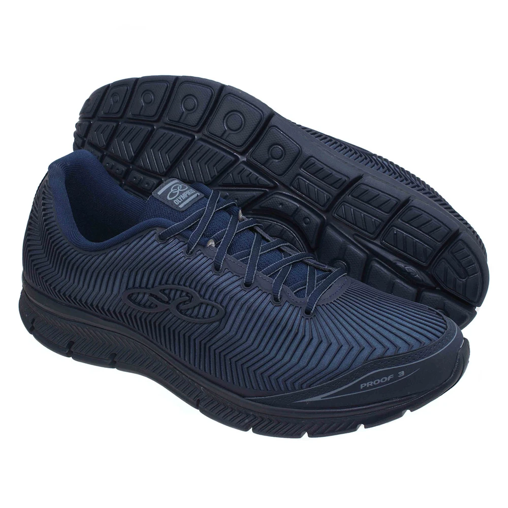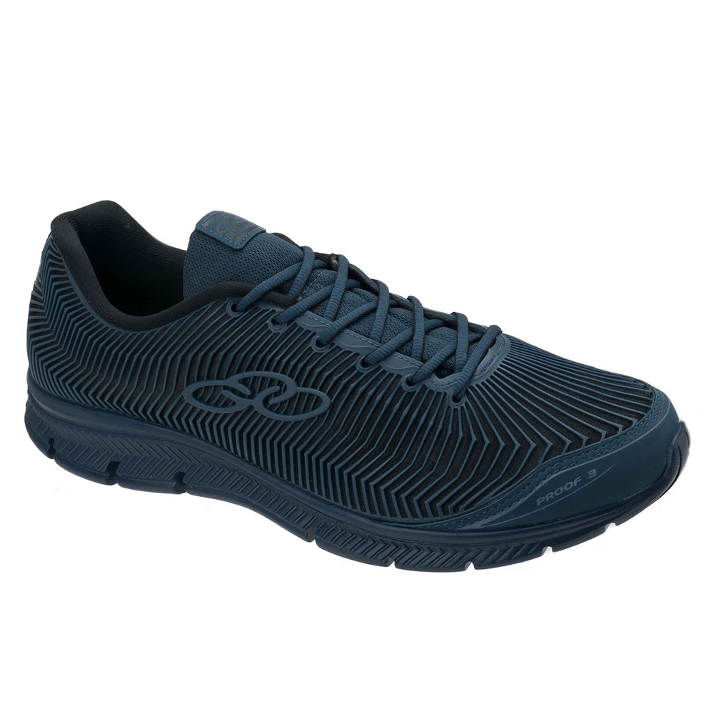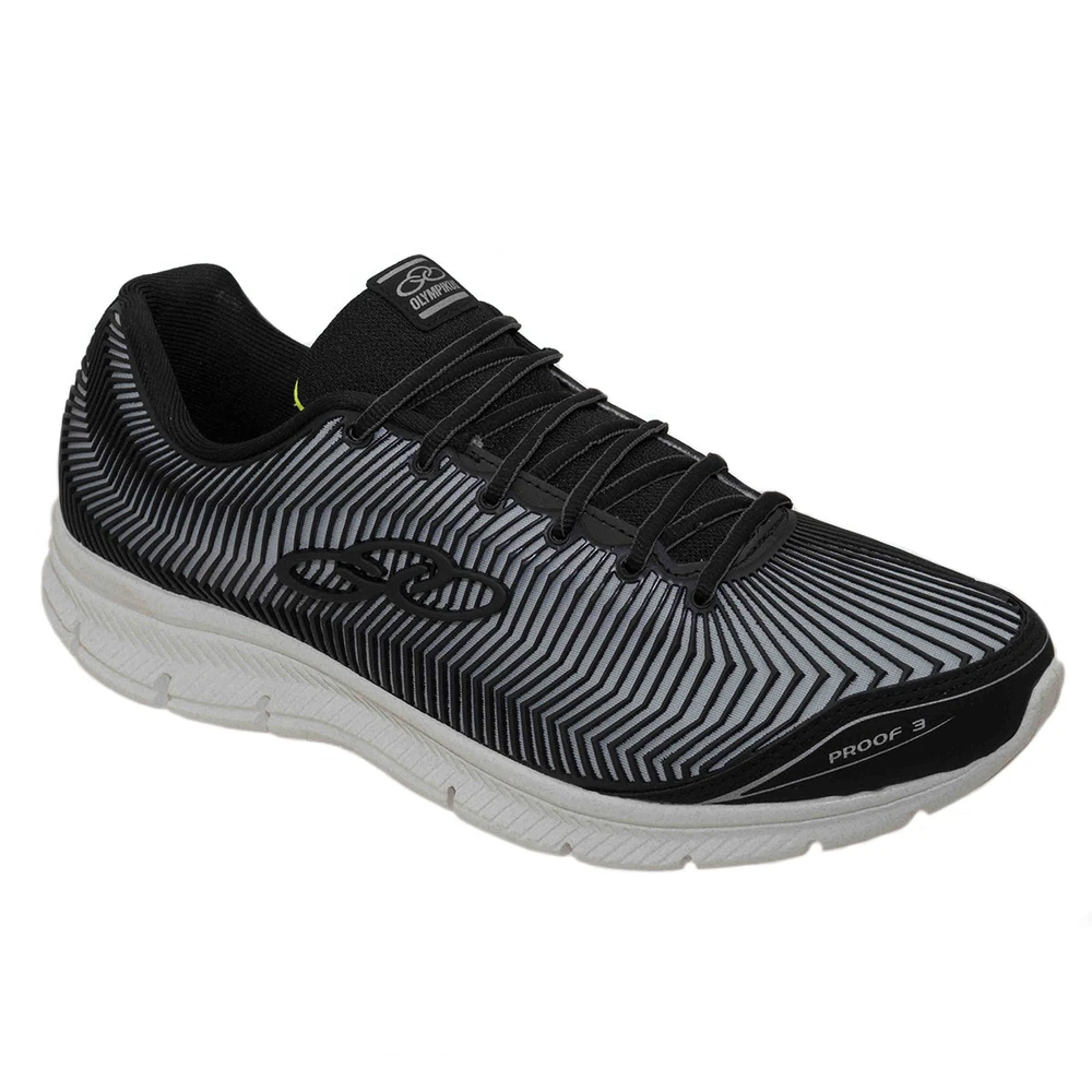 O Olympikus Proof 3 é o tênis ideal para quem busca conforto e alta durabilidade. Seu solado possui design com recortes verticais, que aumentam a flexibilidade, além da tecnologia de amortecimento Evasense, que proporciona leveza e maciez para os corres diários. O cabedal é confeccionado em tecido de poliéster, com a tecnologia Covergrid, o seu material é injetado diretamente no tecido, proporcionando maior proteção, resistência e durabilidade. Possui ainda forro com espuma e atacador bicolor, ambos compostos por tecido poliéster texturizado.