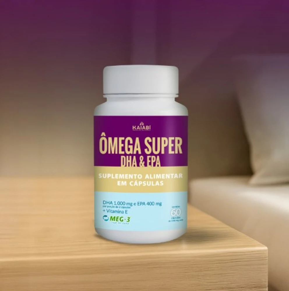 O ÔMEGA SUPER é um suplemento alimentar em cápsulas oleosas, composto por óleo de peixe EE, extraído de peixes selvagens em zonas frias e regulamentadas. É rico em ácidos graxos essenciais, ou seja, substâncias que são essenciais para o bom funcionamento do organismo, mas que não são sintetizadas naturalmente pelo corpo. Os principais ácidos graxos presentes neste suplemento pertencem à família ômega 3, são eles: o eicosapentaenoico (EPA) e o docosahexaenoico (DHA), no teor de 40% e 50% em área, respectivamente.