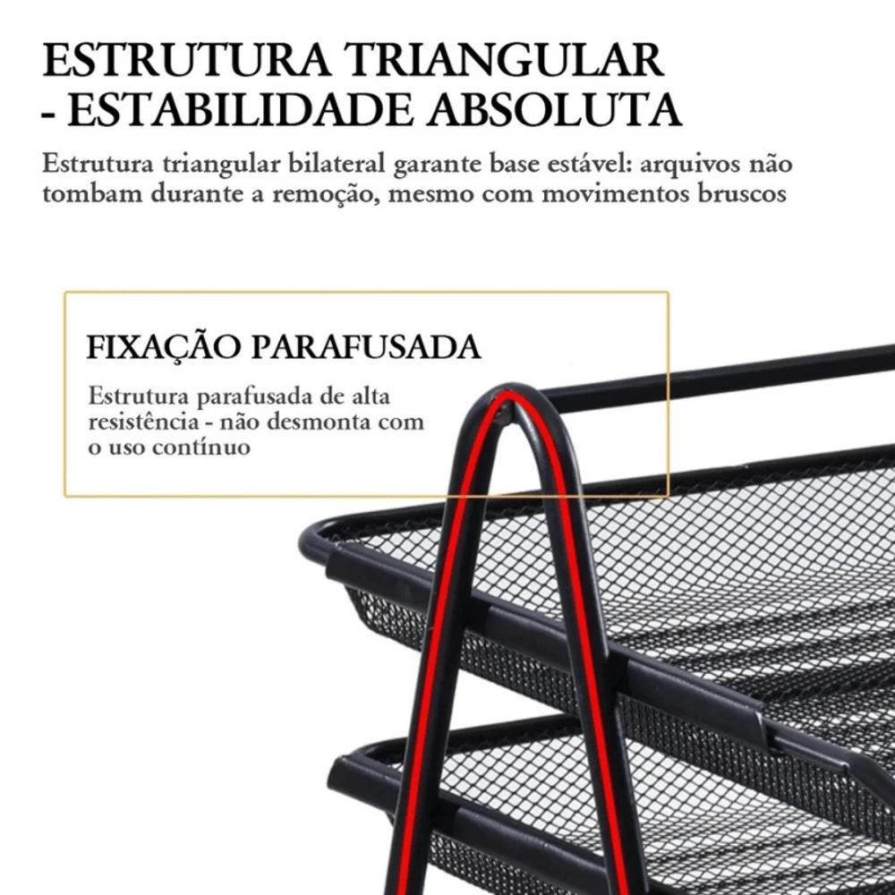 Estrutura triangular estável com fixação parafusada, resistente ao uso contínuo