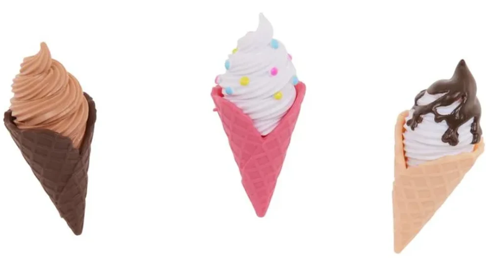 Com 3 sorvetes de brinquedo para encher cones e tigelas de waffle, além de acessórios como um pote de canudos e um porta guardanapos. Adicione toques finais com os confeitos, frascos de chantilly e calda de chocolate.