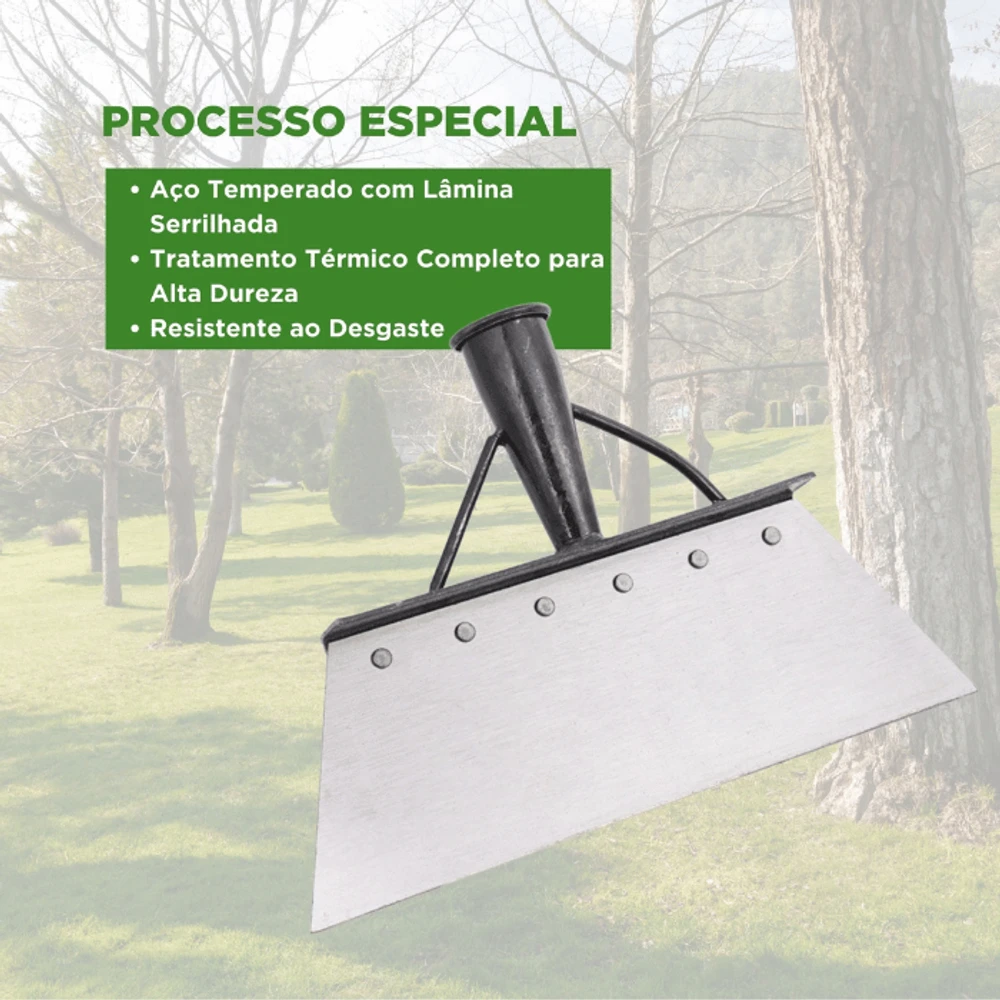 Borda afiada com serrilhado funcional: remove com facilidade terra compactada, raízes e detritos resistentes;