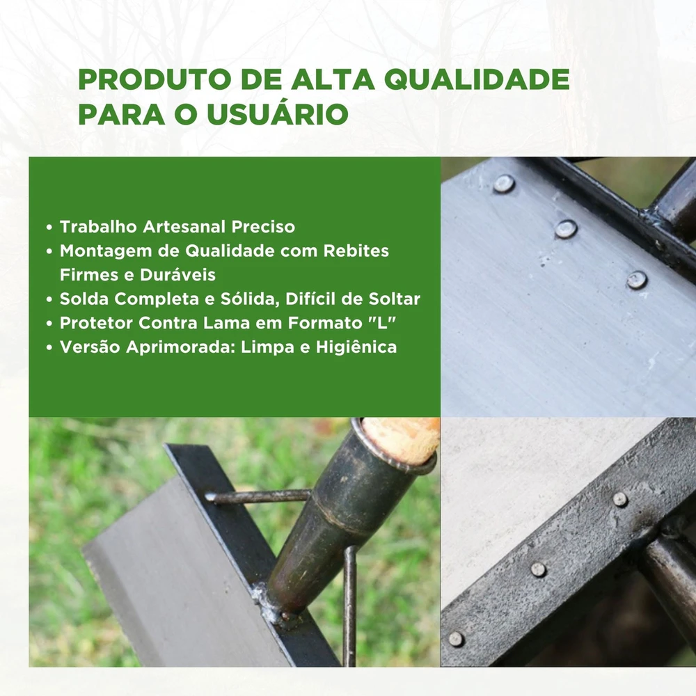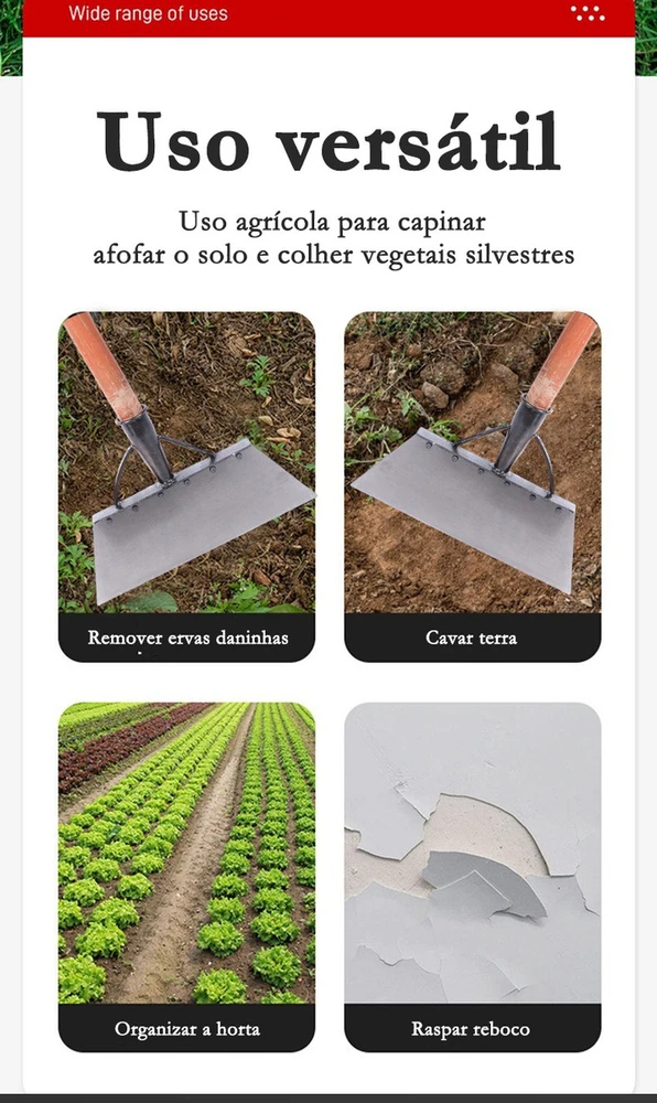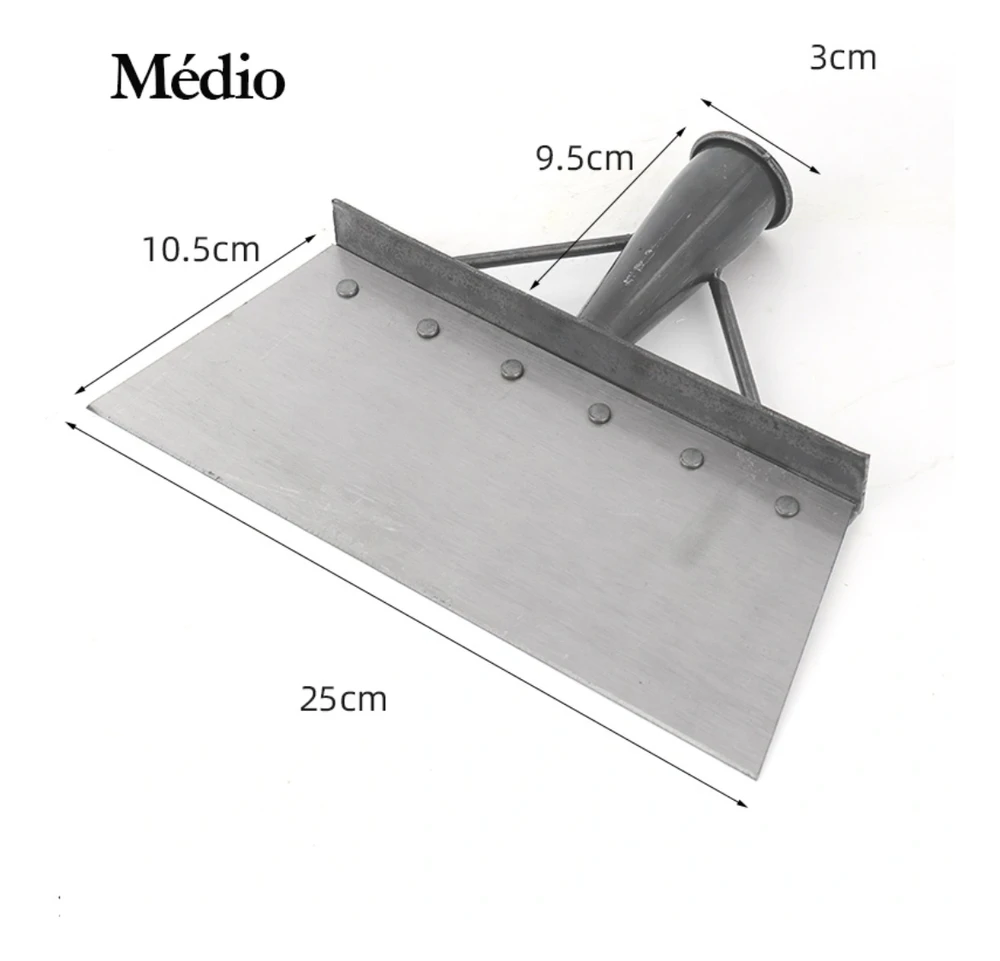 Medidas:Comprimento da espátula: 10,5 cmComprimento do cabo: 9,5 cmLargura total: 25 cmBenefícios:Borda afiada com corte serrilhado: ideal para soltar terra endurecida, raspagem de raízes, barro seco ou resíduos difíceis;Solda reforçada e estrutura sólida: mais segurança e durabilidade no uso contínuo;Protetor contra lama em formato "L": evita o acúmulo de sujeira e proporciona mais conforto durante o uso;Design ergonômico: oferece melhor controle e firmeza nas mãos.Robusta e versátil, é a aliada ideal para quem busca eficiência em cada detalhe do trabalho no jardim ou no campo.
