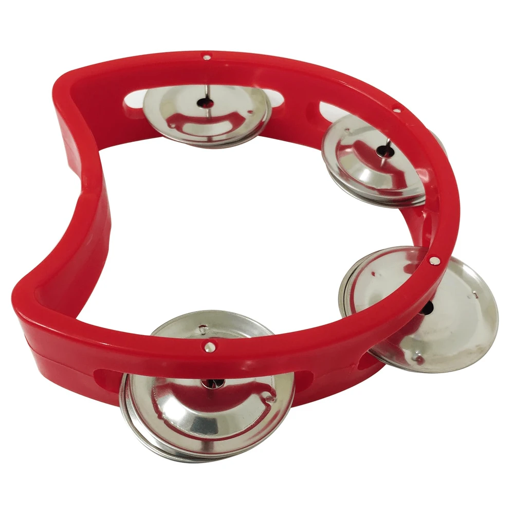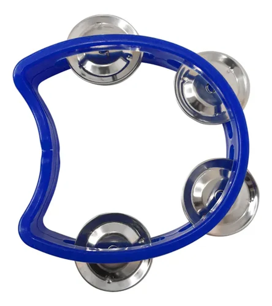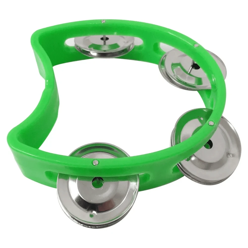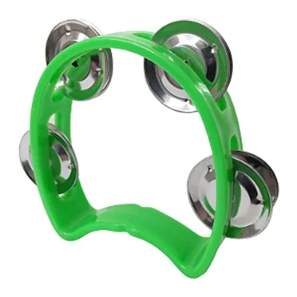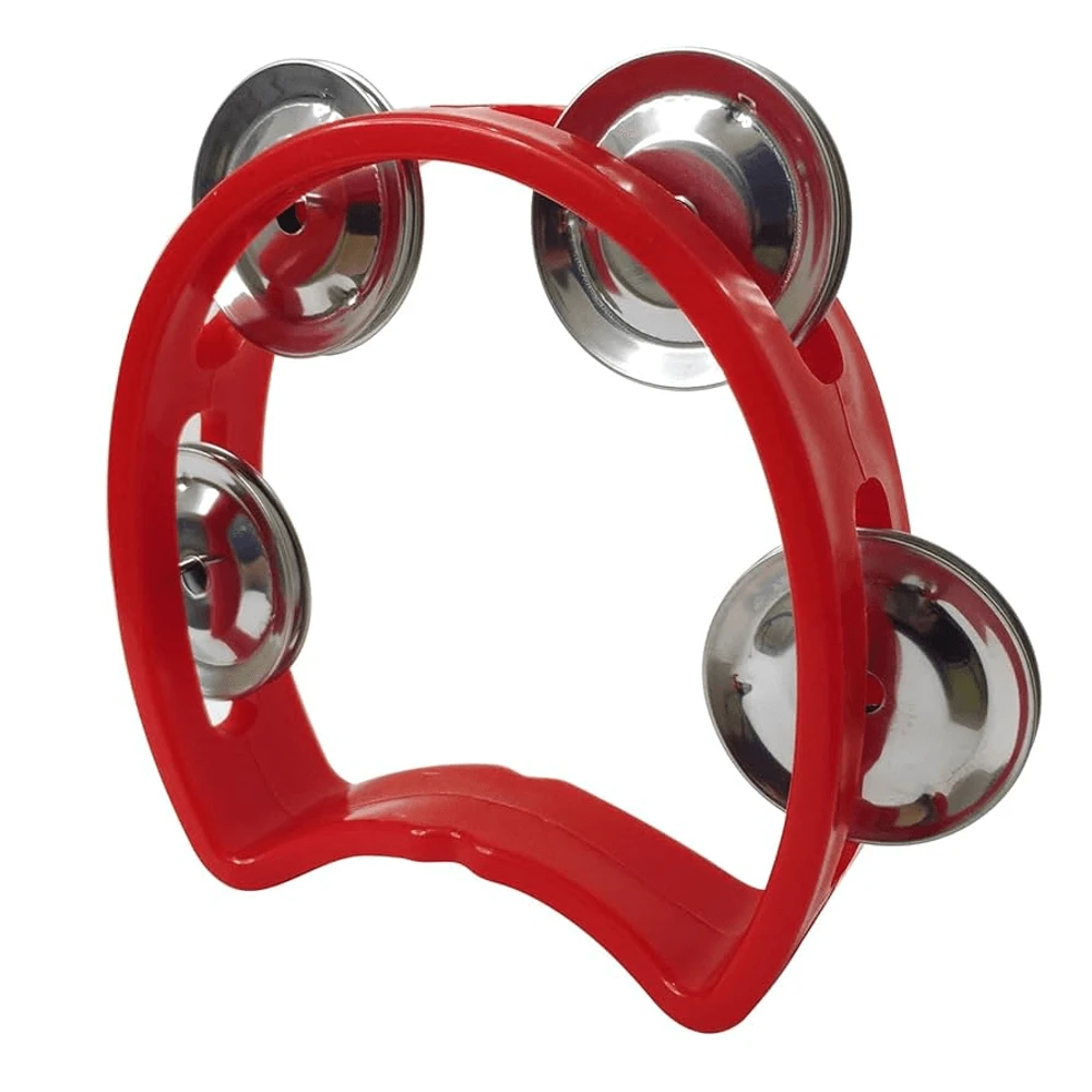 Pandeiro infantil em formato meia-lua, produzido em plástico resistente, leve e seguro para crianças.