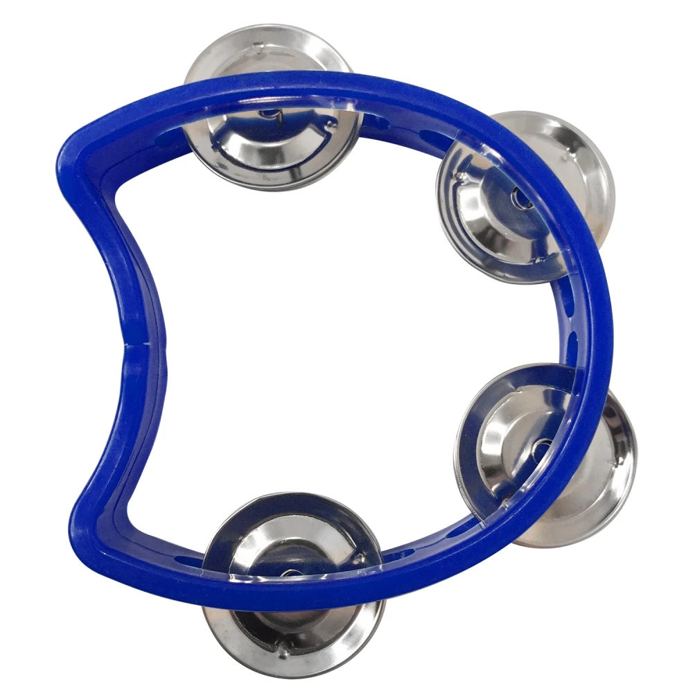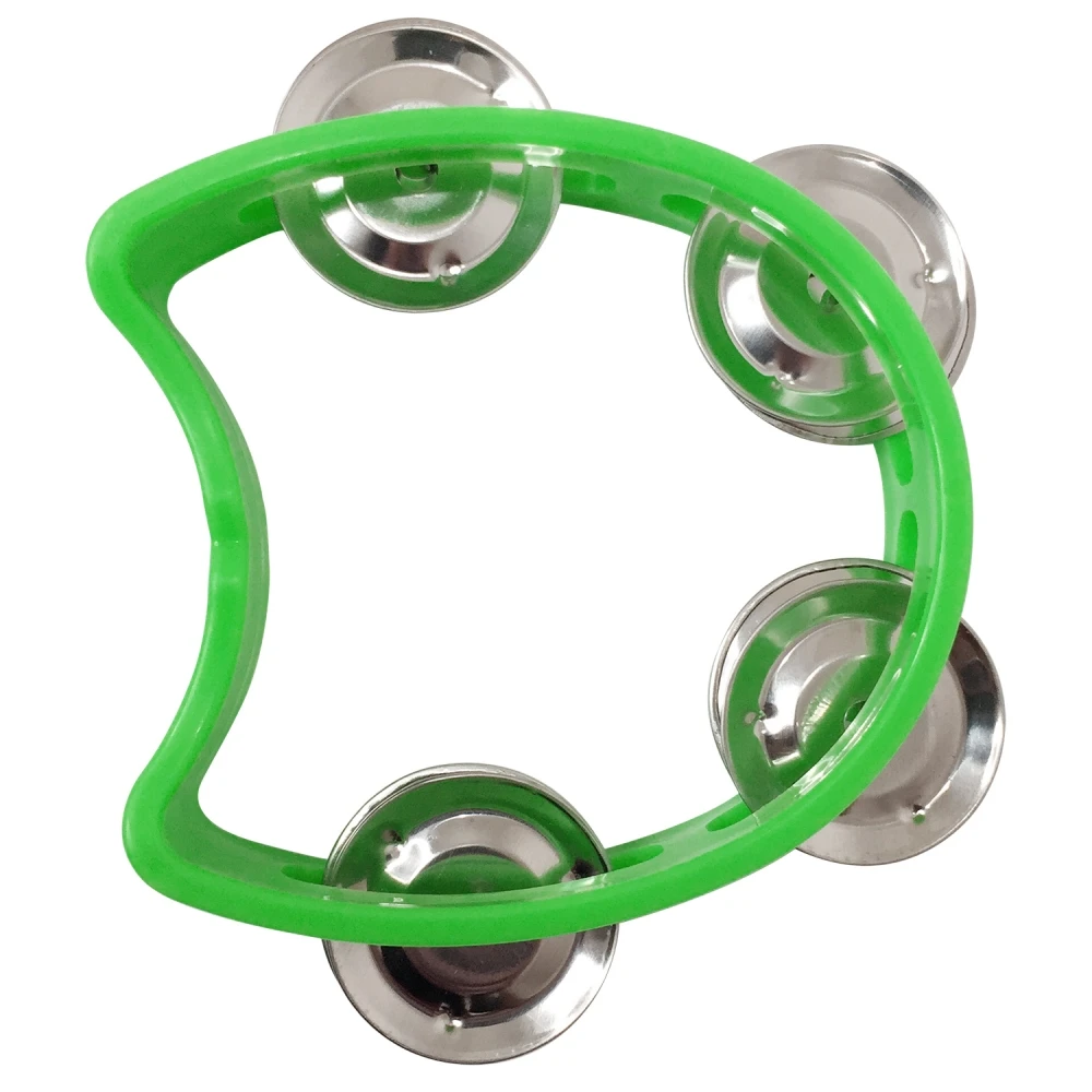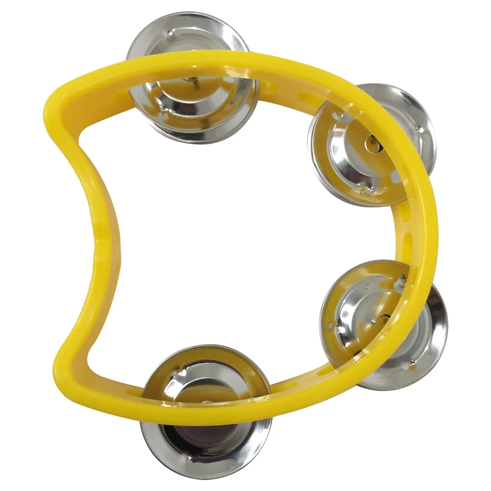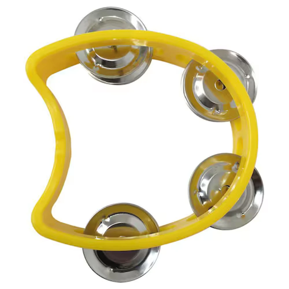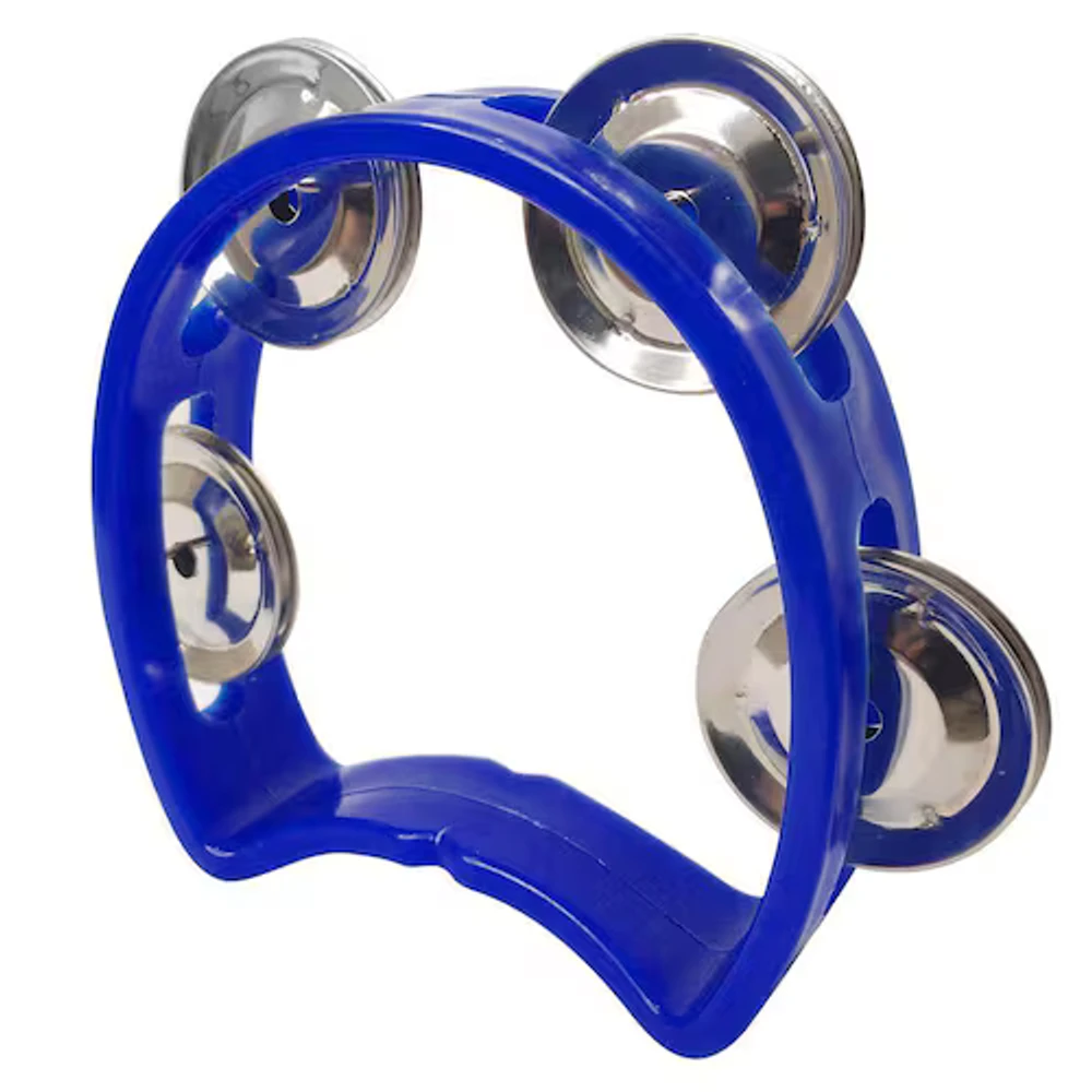 Pandeiro infantil em formato meia-lua, produzido em plástico resistente, leve e seguro para crianças.