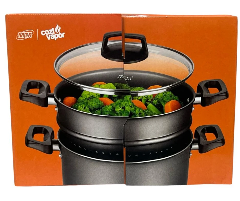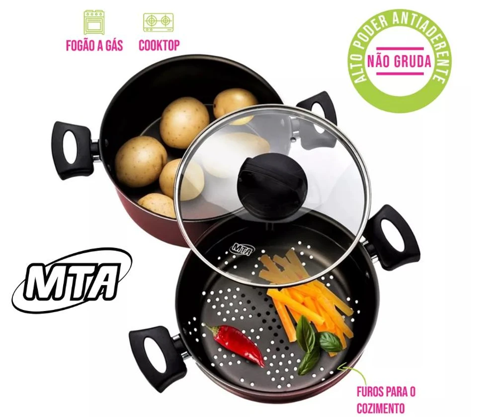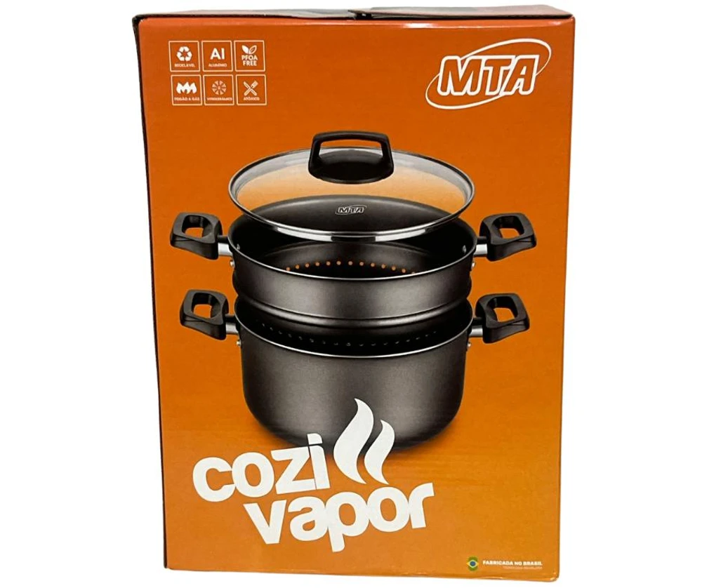 A panela Cozivapor 3 em 1 da MTA é a solução ideal para suas preparações culinárias. Com revestimento antiaderente interno e externo, ele oferece durabilidade e facilidade de limpeza. Prepare seus alimentos no vapor de forma prática e saudável, garantindo o máximo de sabor e nutrientes em suas refeições.
