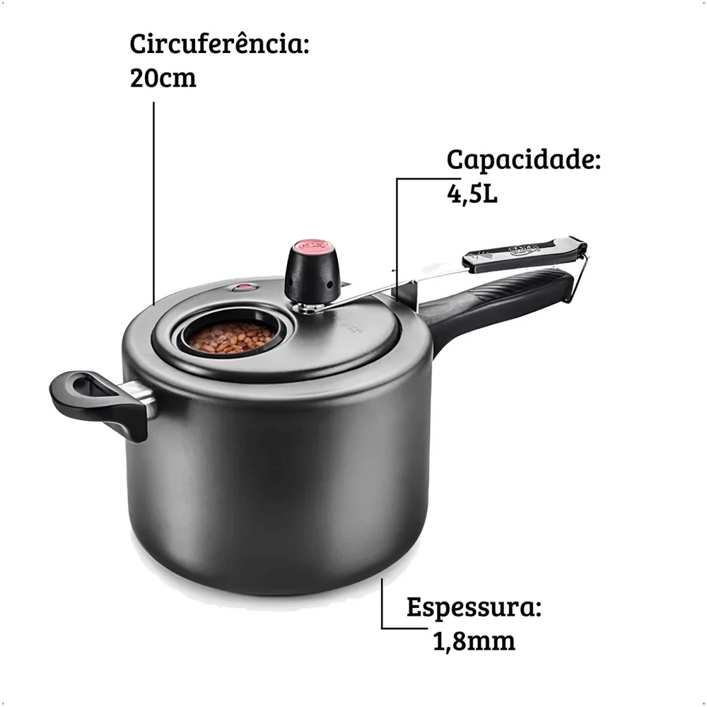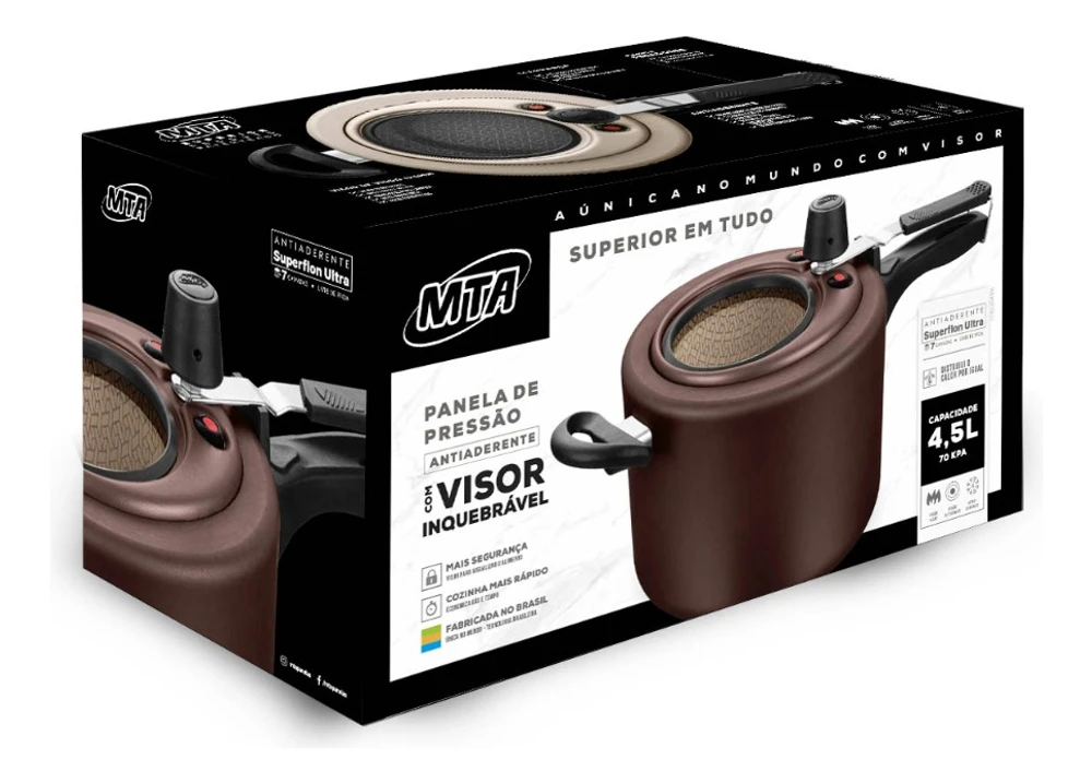 A panela de pressão antiaderente da MTA é uma excelente opção para quem busca praticidade e agilidade na cozinha. Com capacidade para até 4,5L e o revestimento antiaderente superflon é bastante resistente e garante que os alimentos não grudem na panela, tornando a limpeza muito mais fácil.