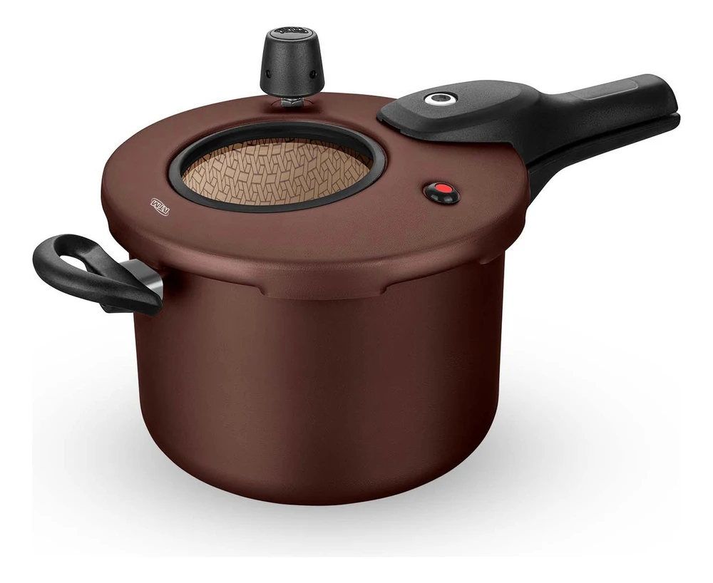 Panela de Pressão Marrom Antiaderente Com Fechamento Externo 4,5 Litros