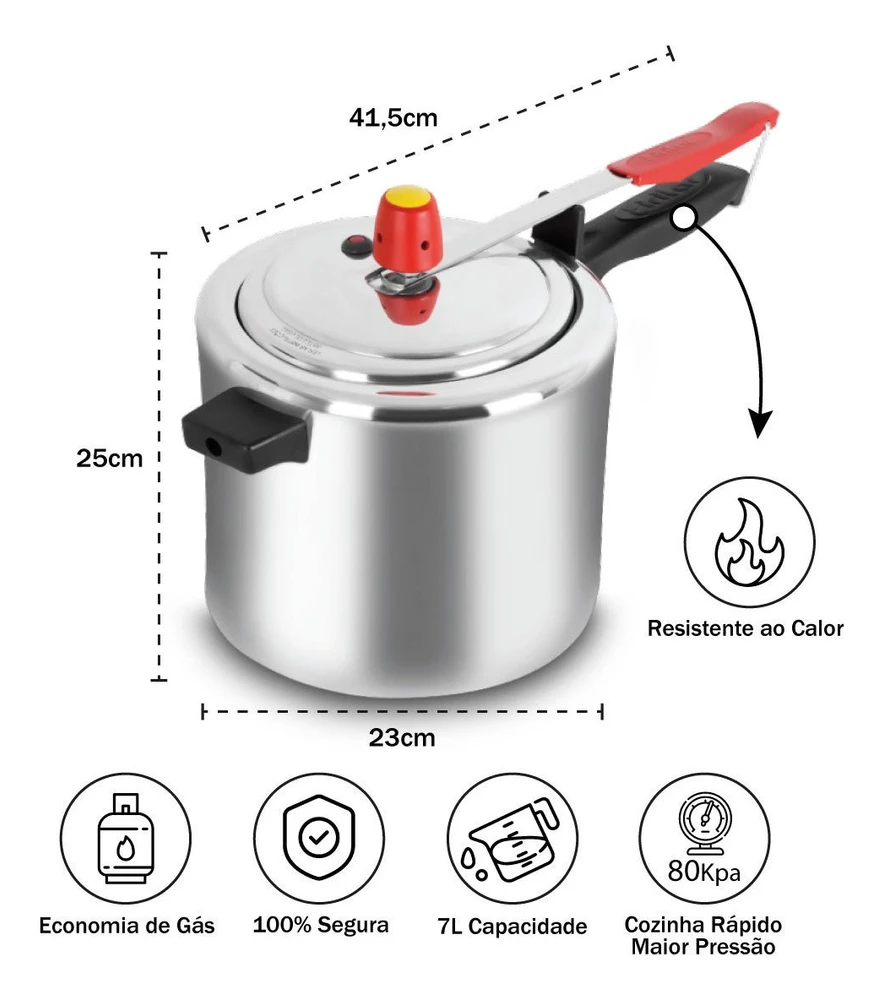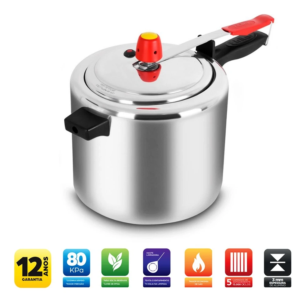 - A pressão de trabalho é de 80 KPA, oferecendo maior rapidez no cozimento de alimentos e consequente economia de energia em comparação com outras existentes no mercado com pressão de trabalho inferiores. Vide gravação no fundo da panela.