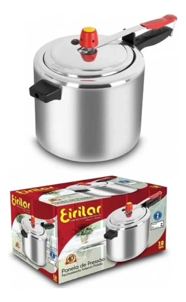 Panela de Pressão de fechamento interno, confeccionada em alumínio, fabricada pela Indústria de Alumínios Eirilar., tradicional Empresa do setor. Desenvolvida especialmente para atender a um segmento de mercado que necessita preparar pequenas porções de alimentos. Desde que obedecidas as instruções de uso inseridas nas embalagens, esta panela de pressão é 100% segura, sendo certificada pelo INMETRO.
