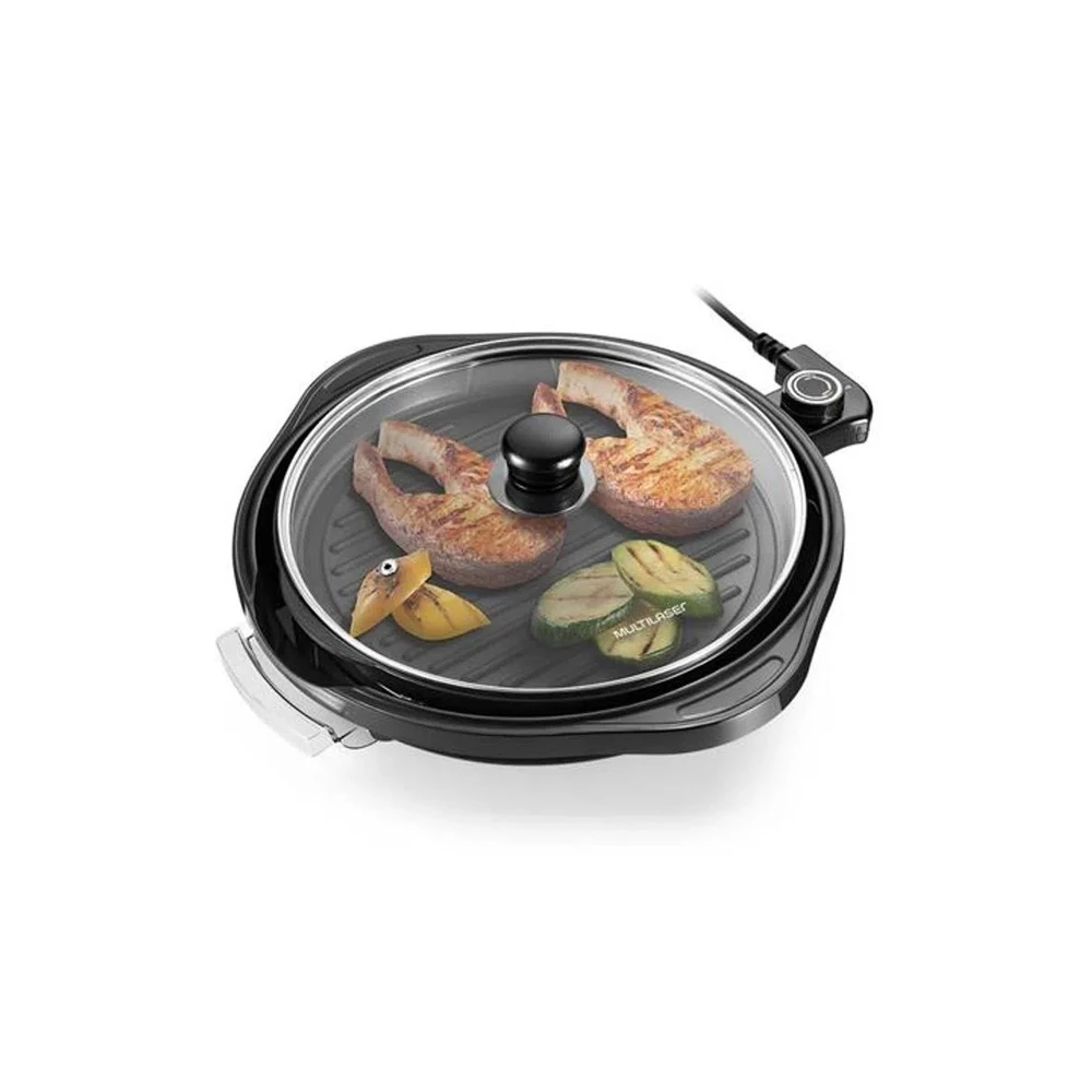 Panela Grill Multilaser Gourmet, desenvolvida para você preparar carnes, frutos do mar, pizzas, omeletes, entre outros tipos de alimentos. Possui tampa de vidro com saída de vapor para maior praticidade e segurança, com a alça fria você evita acidentes ao pegar e transportar sua Panela Grill.A grelha antiaderente e removível, para te proporcionar simplicidade na hora das receitas e de fácil limpeza, tornando seus momentos na cozinha muito mais leves.Temperatura regulável para você preparar suas receitas na temperatura ideal, a bandeja coletora de gordura garante que você tenha uma alimentação gostosa e saudável sem excesso de gordura. Seu cabo de energia e removível, portátil, portanto você pode levar a panela para a mesa durante as refeições!A sua nova Panela Grill Multilaser, possui 30cm de diâmetro, para fazer a refeição favorita da sua família.