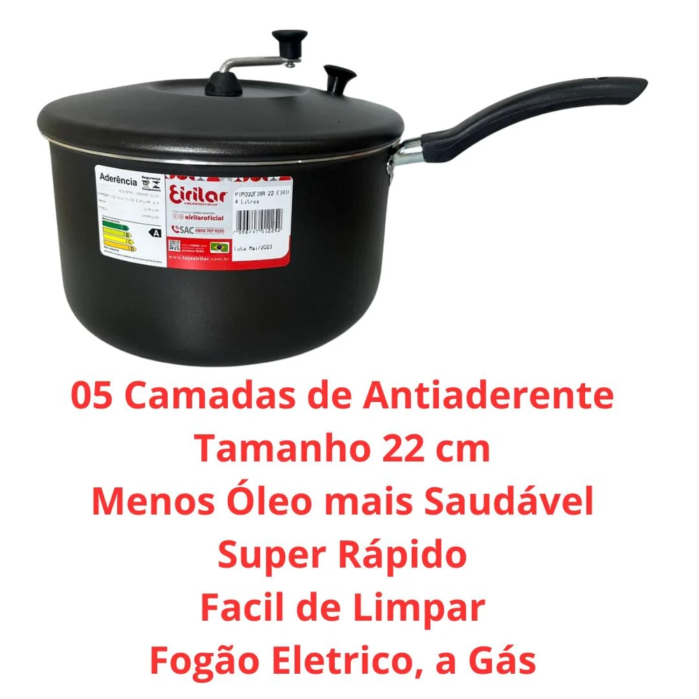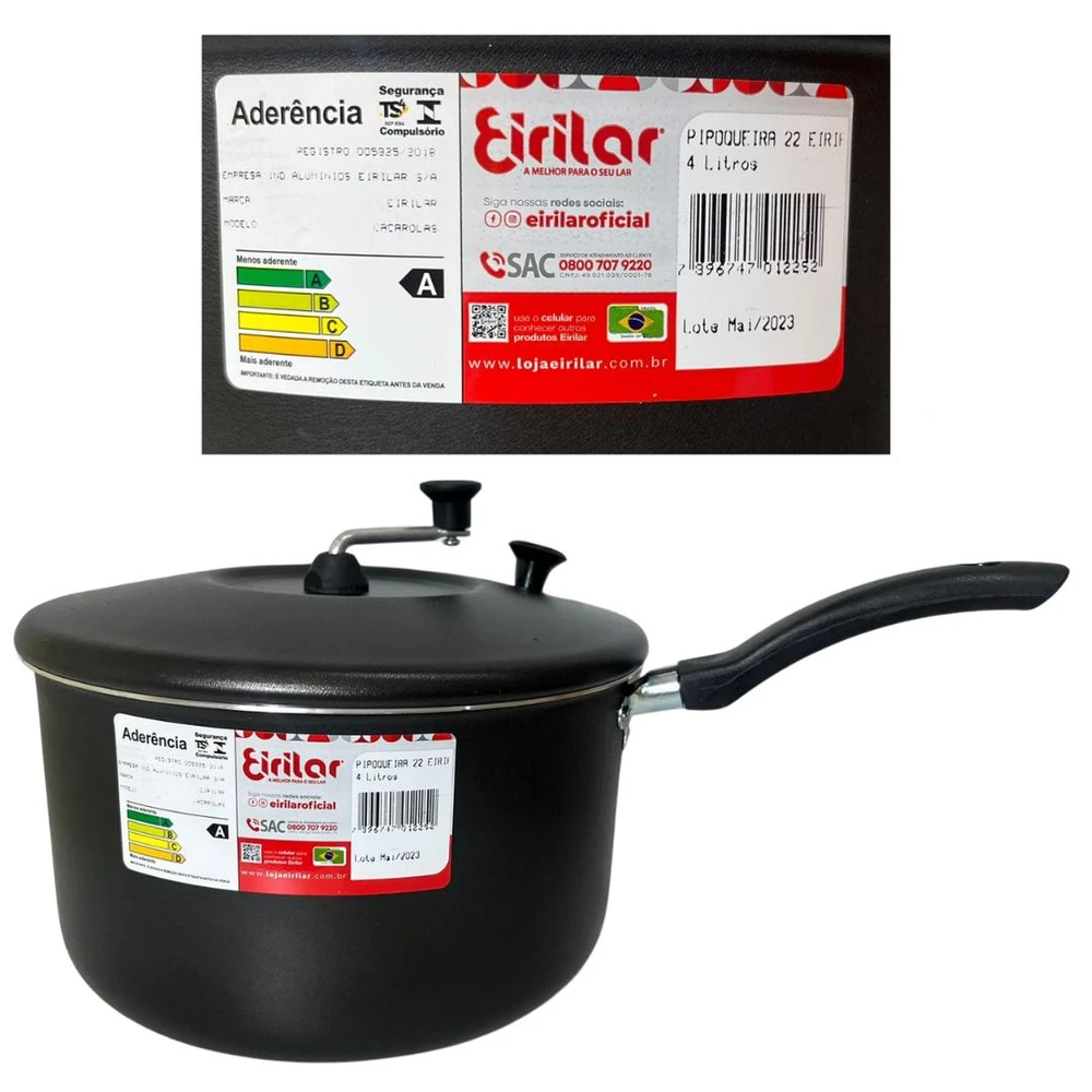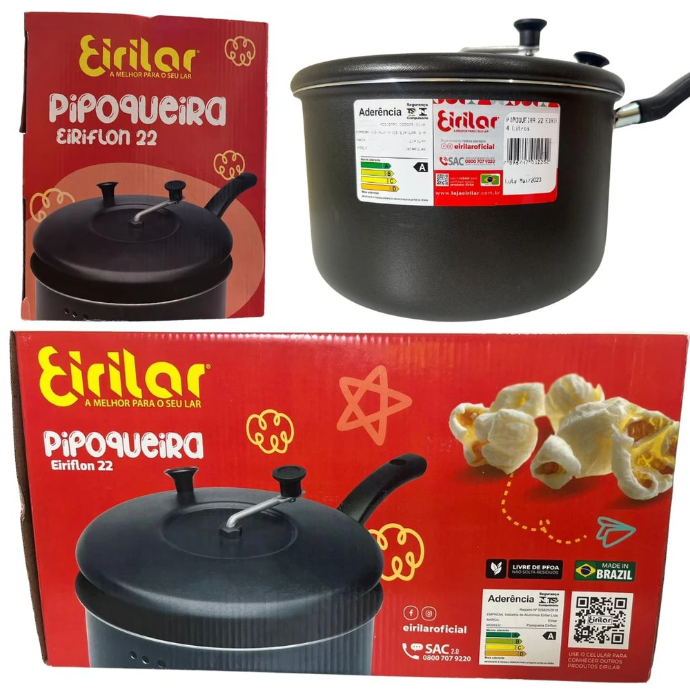Pipoqueira antiaderente é uma panela para estourar pipocas, confeccionada em alumínio antiaderente, fabricada pela Eirilar.