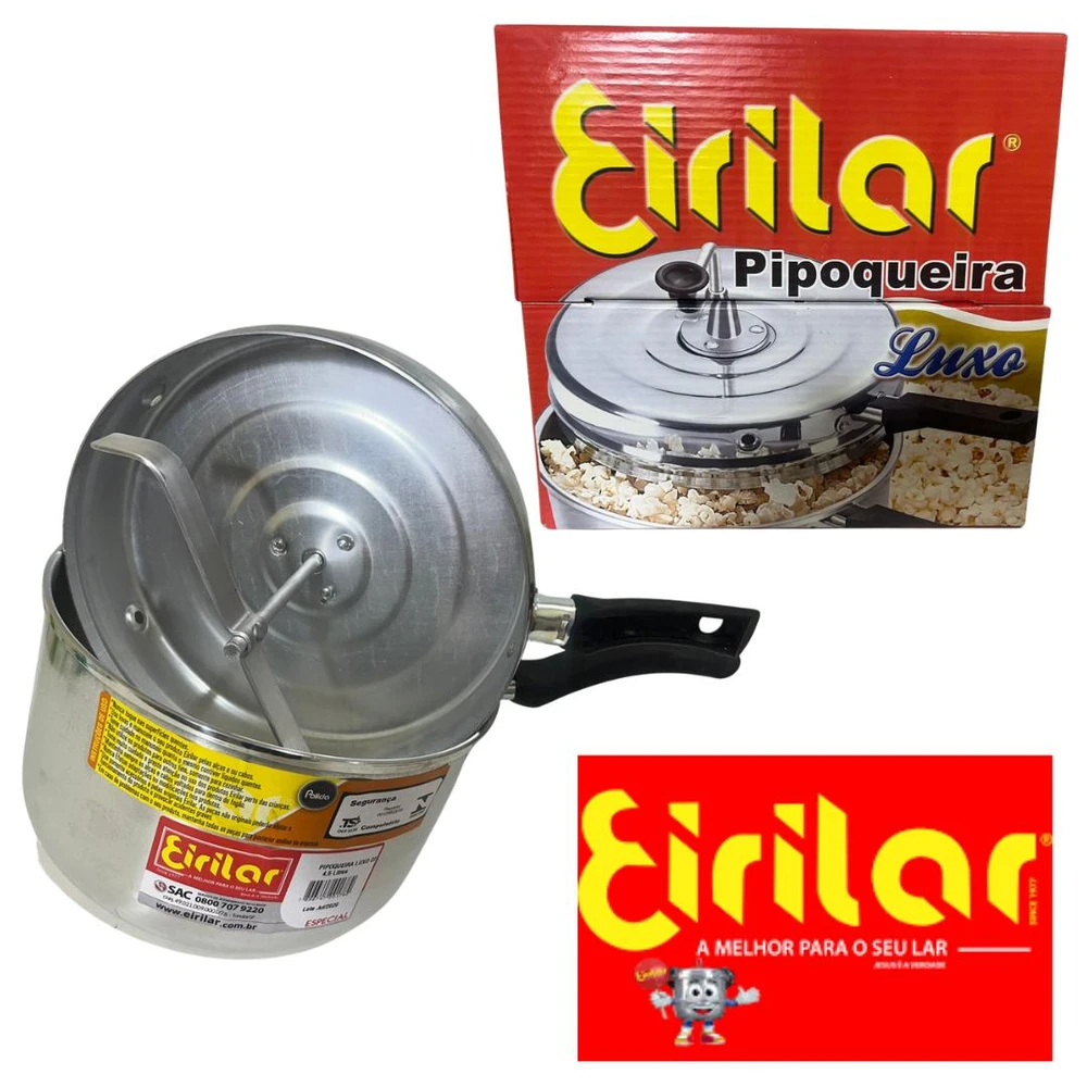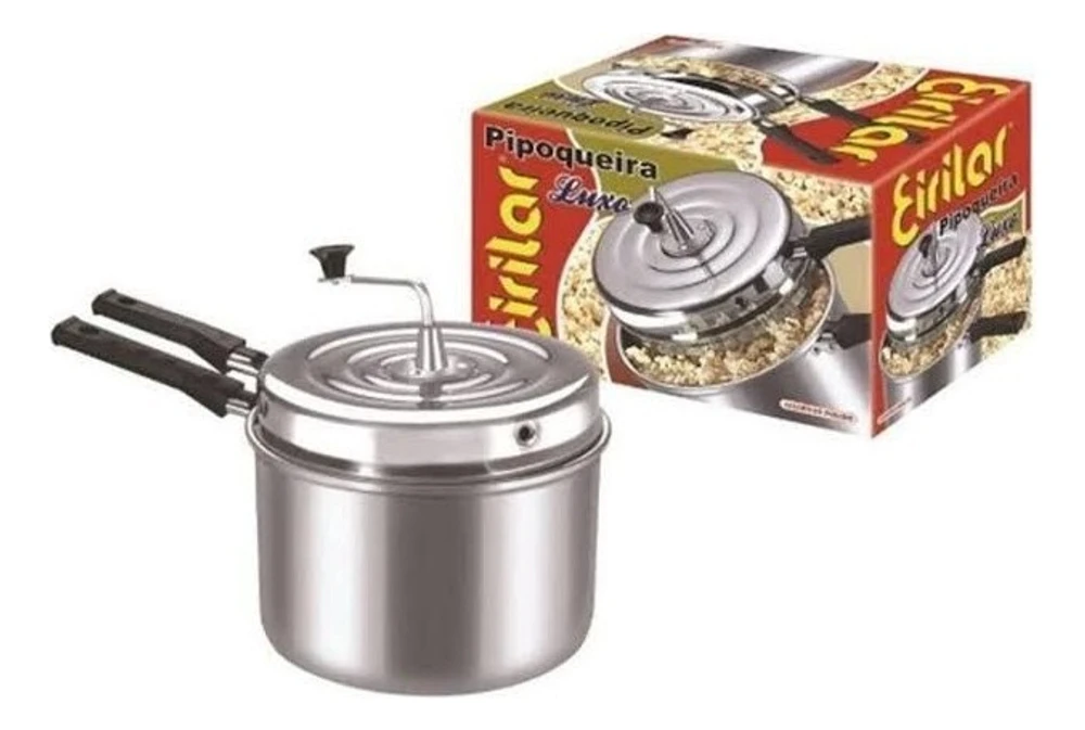 Com uma capacidade de 4,5 litros, esta panela é perfeita para preparar uma grande quantidade de pipocas de uma só vez. Ideal para uma noite de filmes em família ou para uma festa com amigos, a Panela Pipoqueira Luxo Polida Cor Prata da Eirilar é a escolha certa para você.