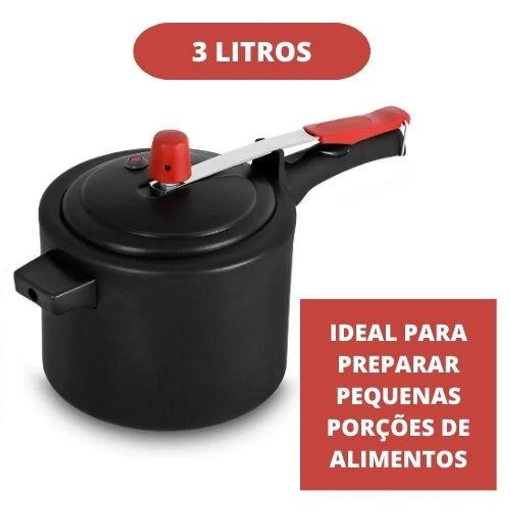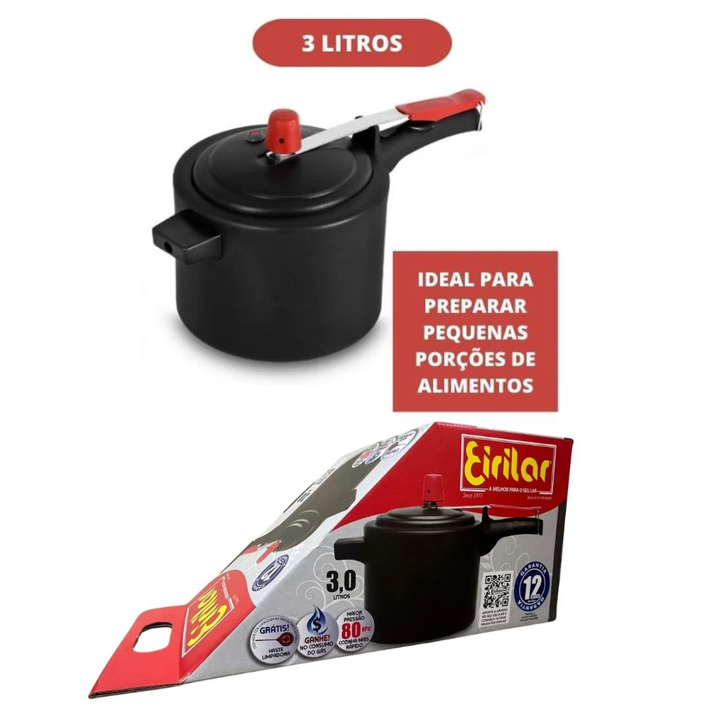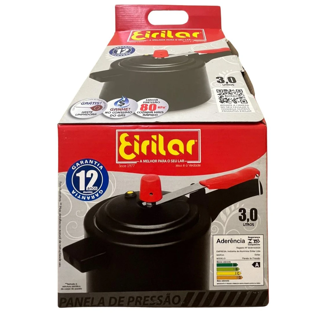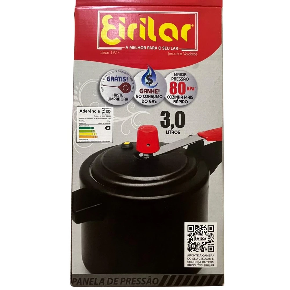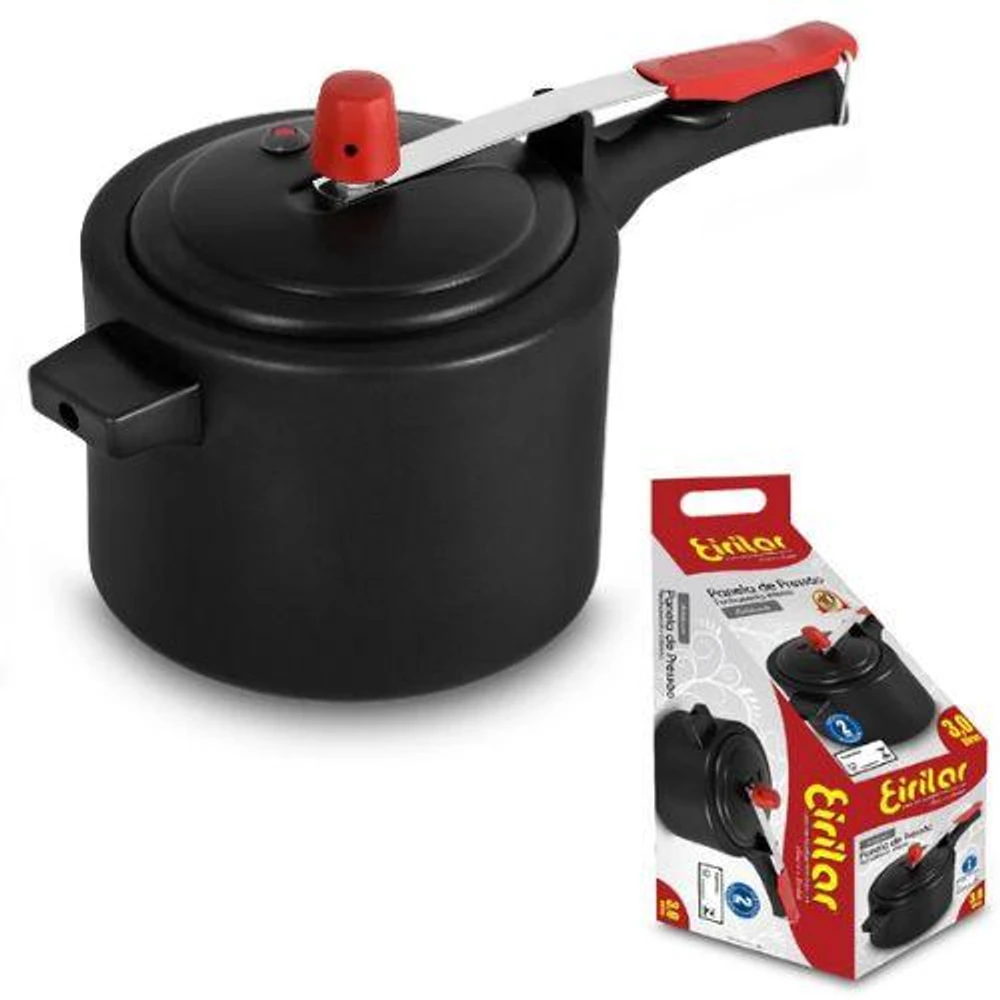Panela de Pressão Eiriflon 3,00 Lts de fechamento interno, confeccionada em alumínio com revestimento em anti aderente, fabricada pela Indústria de Alumínios Eirilar Ltda., tradicional Empresa do setor.