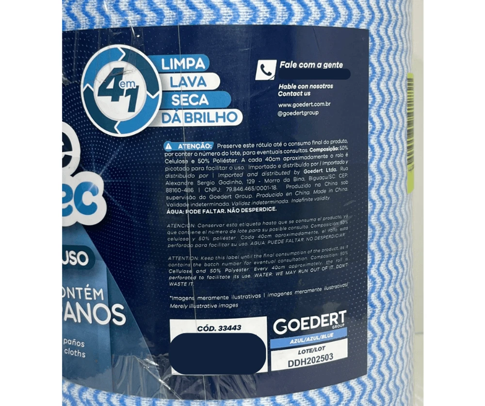 Pano De Limpeza Multiuso Nobre 600 Panos Rolo 240 Mt Azul