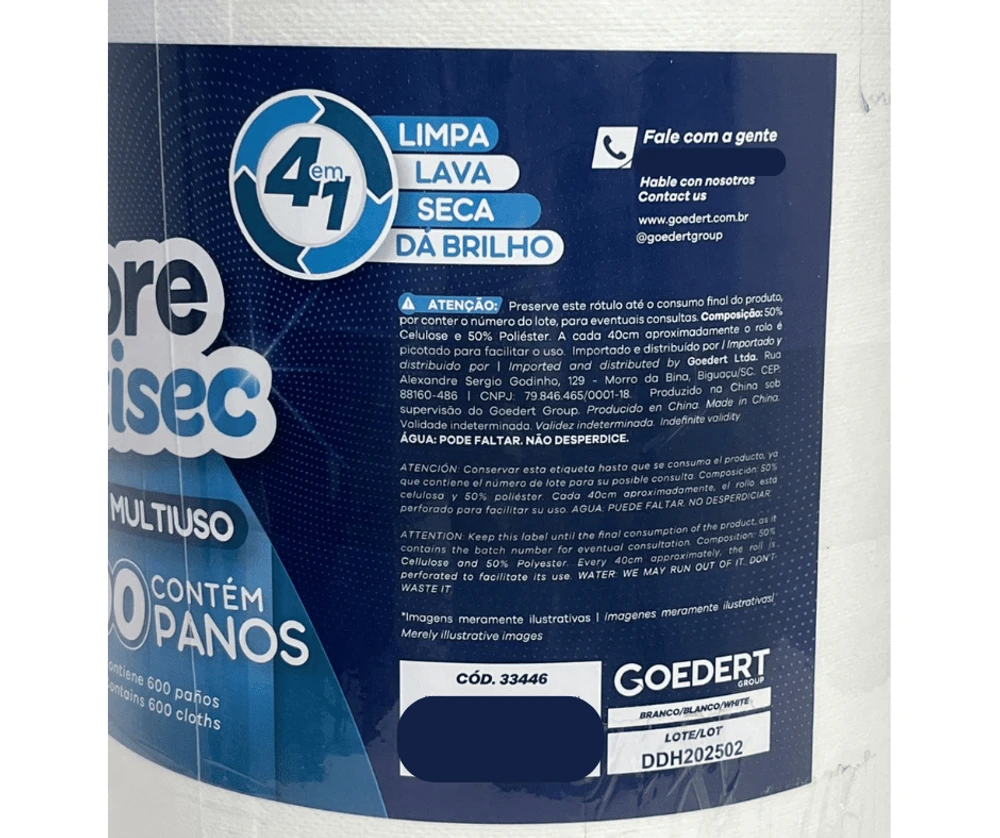 Pano De Limpeza Multiuso Nobre 600 Panos Rolo 240 Mt Branco