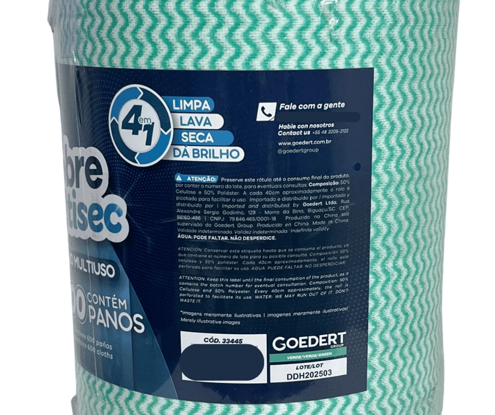 Pano De Limpeza Multiuso Nobre 600 Panos Rolo 240 Mt Verde