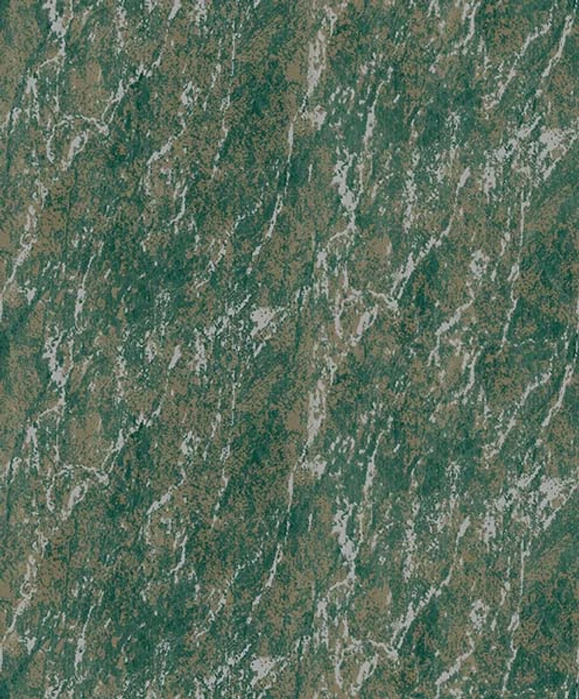 Papel de parede importado abstrato/mármore TNT- Avalon 114- Antichama na cor verde com traços cinza. Rolo com 10 metros por 53 cm.