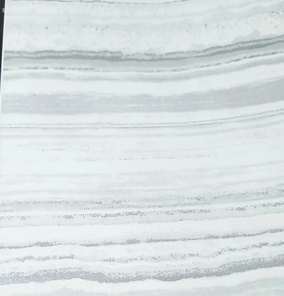 Papel de parede importado efeito/estilo linhas horizontais coleção Avalon 210- cinza claro/gelo e creme - com acabamento em TNT ANTICHAMAS