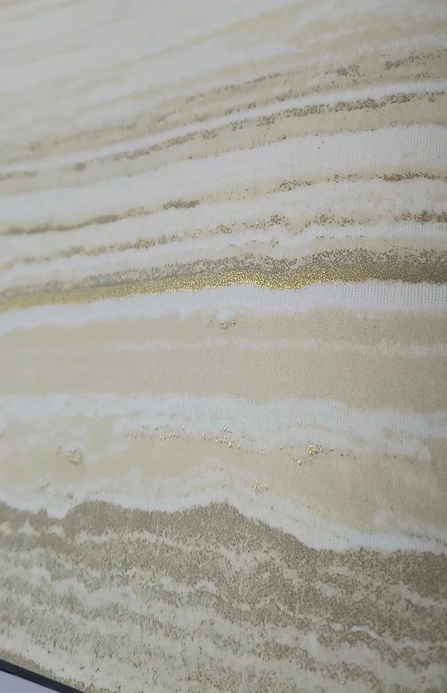 Papel de parede importado efeito/estilo linhas horizontais coleção Avalon 248- bege, dourado e creme - com acabamento em TNT ANTICHAMAS