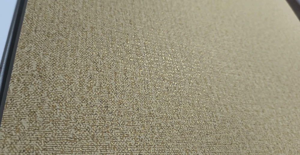 Papel de parede importado linho  TNT- Avalon 127 - bege/ marfim com traços dourado, rolo com 10 metros por 53 cm.