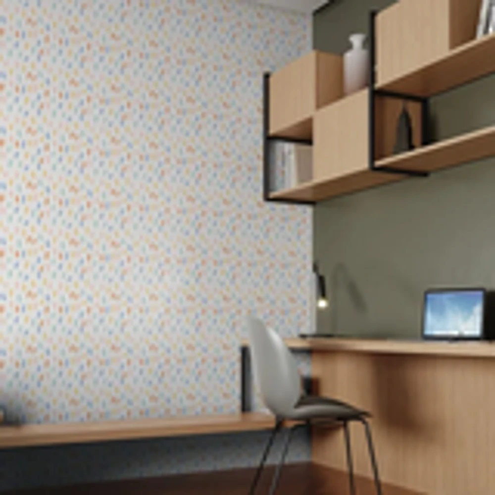 Papel de Parede infantil Vinílico limpável, pincelada colorido, coleção Revoada Ref. 4411 da bobinex.