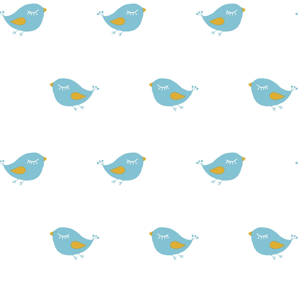 Papel de Parede Infantil passarinhos azul com branco fofura Baby FF4006.