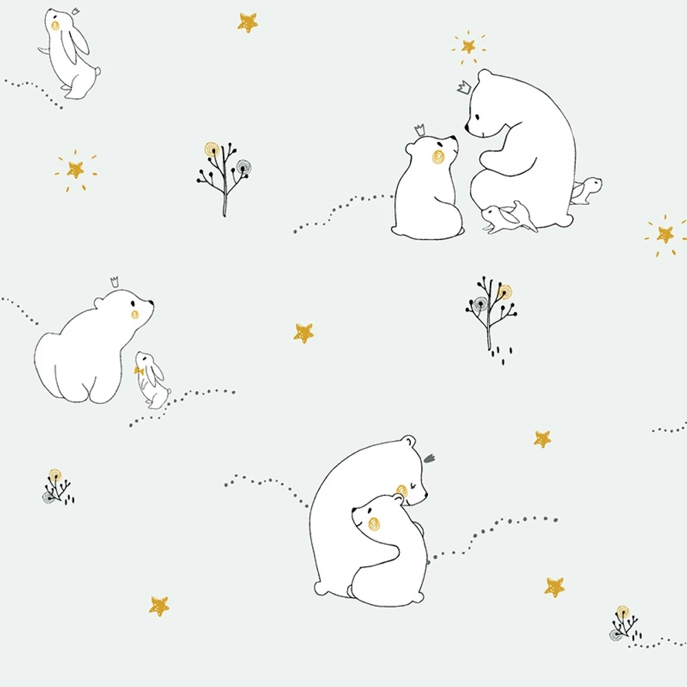 Papel de Parede Infantil Ursinhos Branco Fofura Baby FF4002.