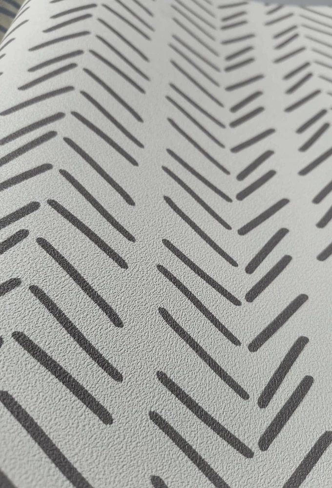 O papel de parede com riscos/ franjinhas na cor cinza revoada 4447 é uma excelente escolha pra dar aquele charme, elegância e sutileza ao seu ambiente. Material conta com estampa de leve tonalidade o que permite combinação com outros itens de decoração, camada em proteção vinílico que permite limpeza com pano levemente umedecido. rolo vendido na medida de 53 cm de largura por 10 metros de altura/comprimento que cobre aproximadamente 4,20 á 4,50 m² de superfície.