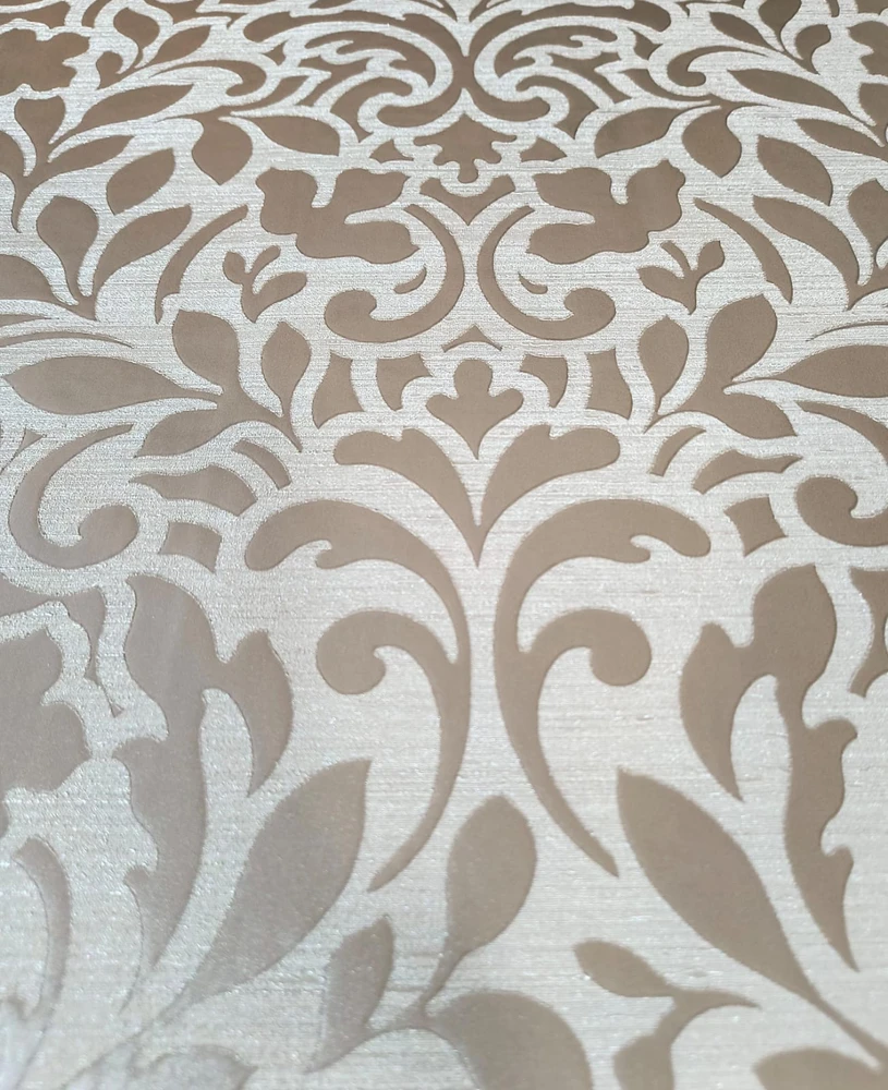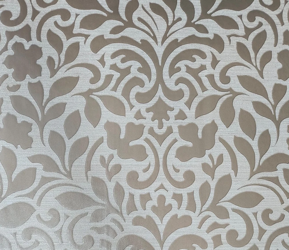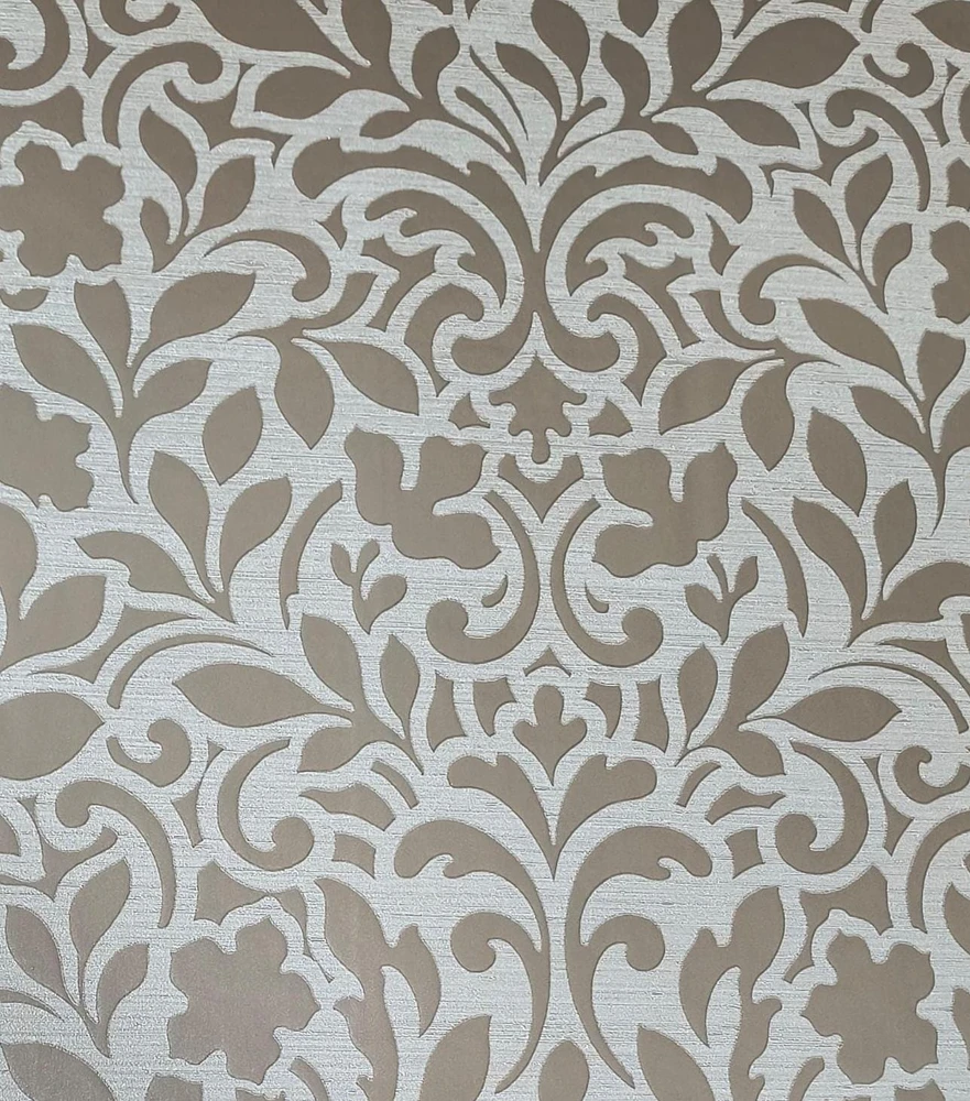 Papel de parede importado, coleção Tesori italiani, proteção em vinilico limpável, estilo arabesco cor marrom com gelo 45010