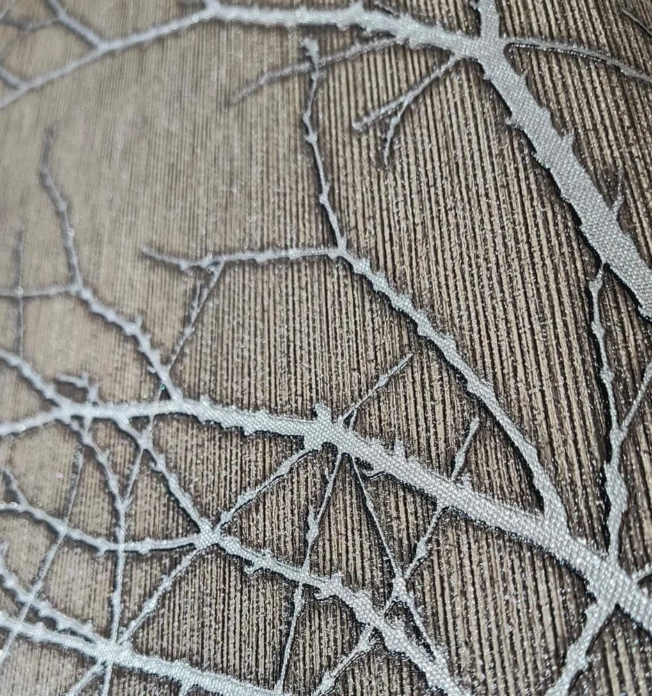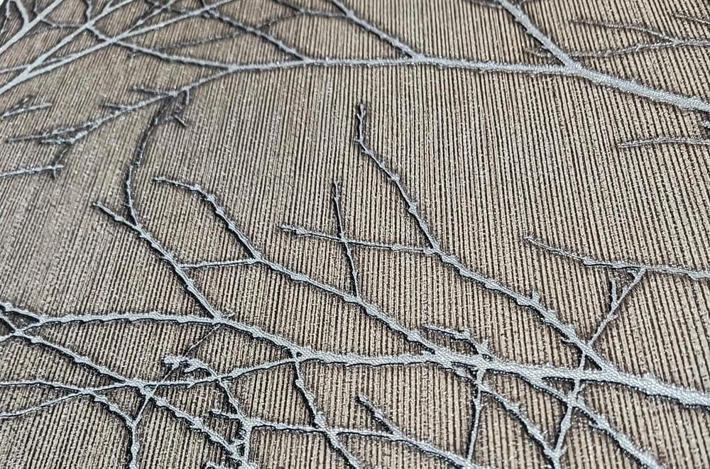 Papel de parede importado, coleção Tesori italiani, proteção em vinilico limpável, estilo galhos cor marrom com cinza-45009.