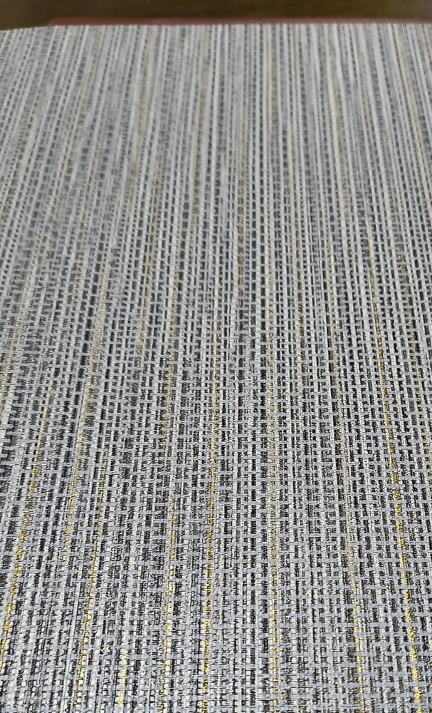 Papel de parede vinilico, limpavel- estilo listras verticais essencial 4350 bobinex cor cinza azulado com traços dourados.