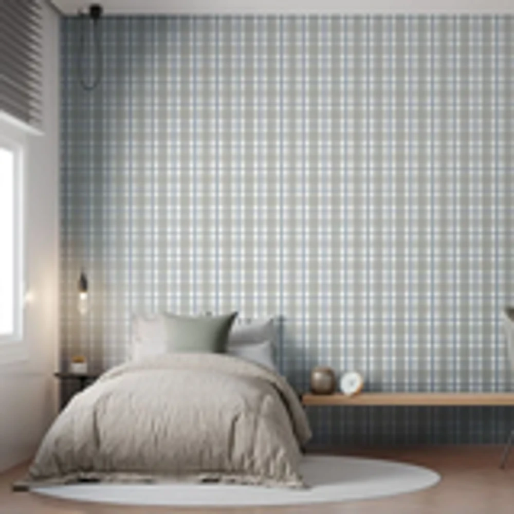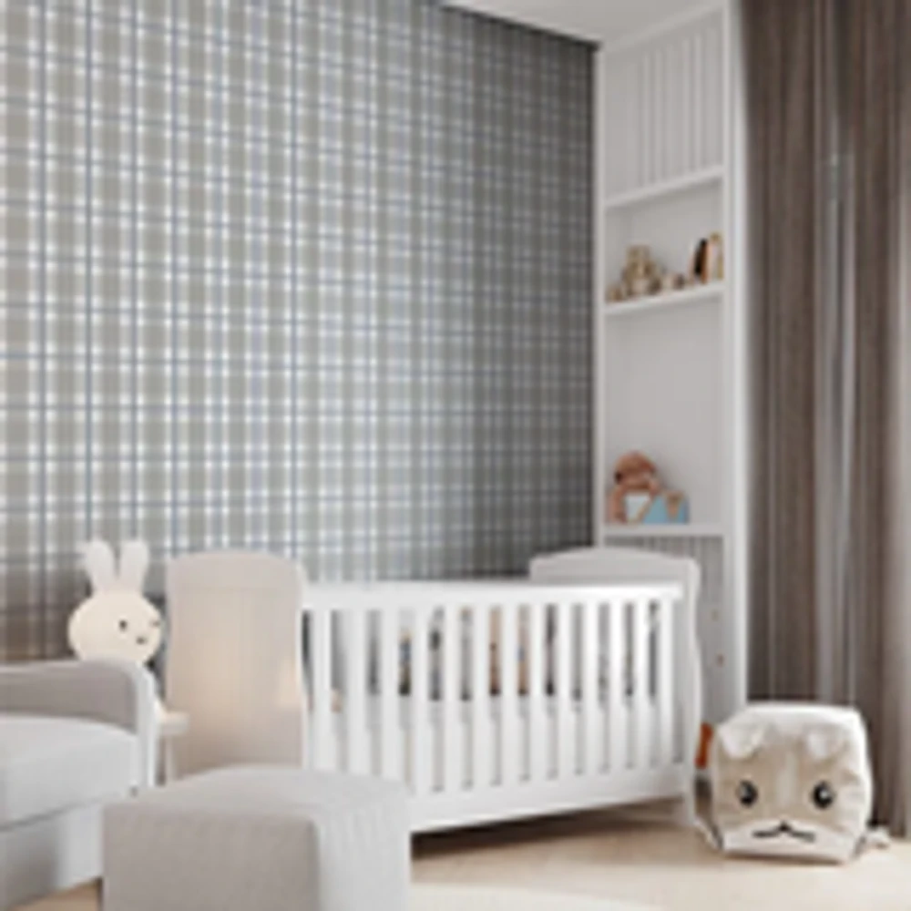 Papel de Parede infantil Vinílico- Xadrez quadros cinza e azul revoada 4455 da Bobinex.