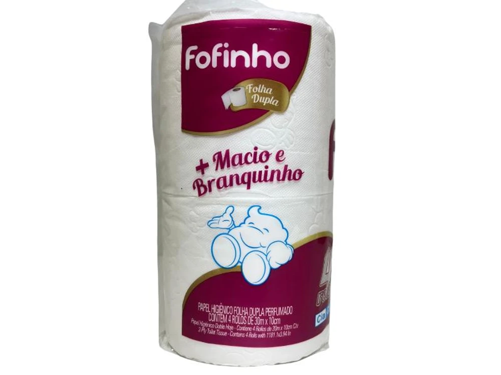 Papel Higiênico Fofinho com 4 rolos de folha dupla.Possui 100% de celulose em sua composição, alta maciez e alto poder de absorção. Compre Já!Especificações:? 100% Celulose? Super Macio.? Alto Poder de Absorção? Folha Dupla? BranquinhoSobre o produto:? Original.? Lacrado de fábrica.? Com garantia.? Alta Qualidade. Marca conceituada no mercado.