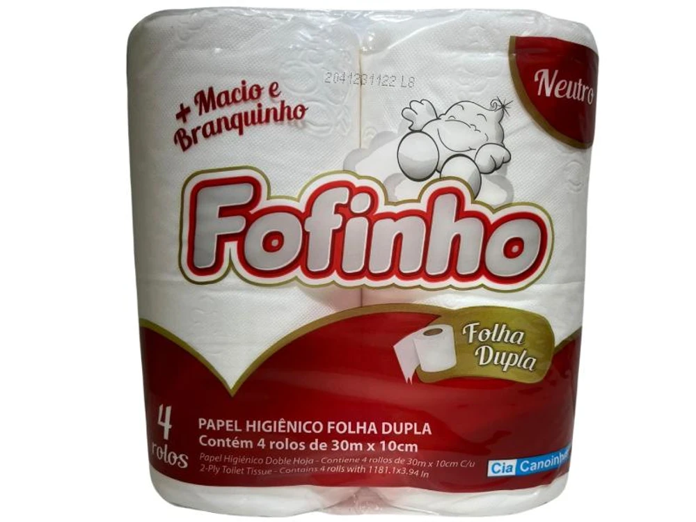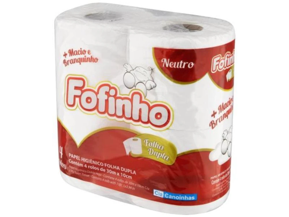 Papel Higiênico Fofinho com 4 rolos de folha dupla.Possui 100% de celulose em sua composição, alta maciez e alto poder de absorção. Compre Já!Especificações:? 100% Celulose? Super Macio.? Alto Poder de Absorção? Folha Dupla? BranquinhoSobre o produto:? Original.? Lacrado de fábrica.? Com garantia.? Alta Qualidade. Marca conceituada no mercado.
