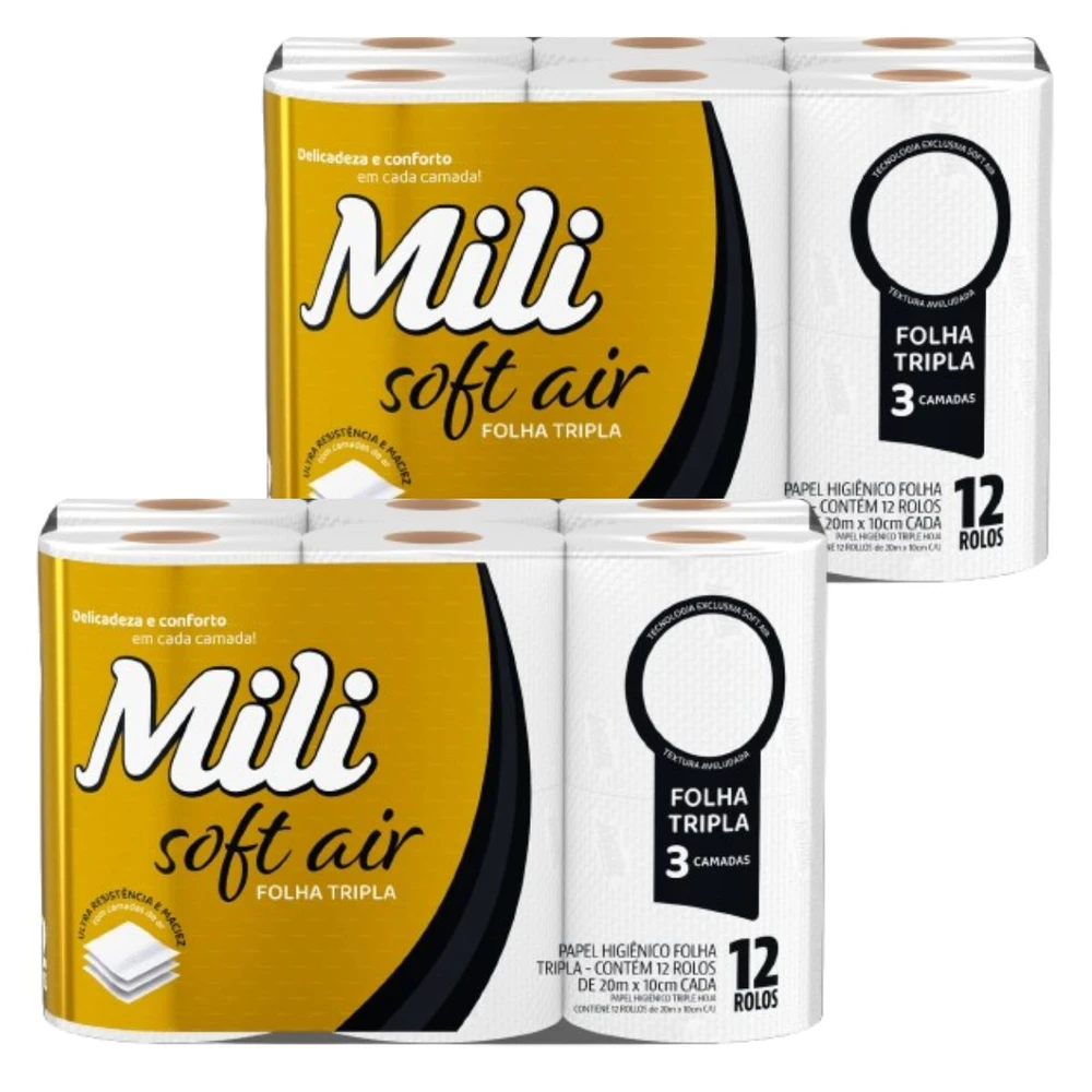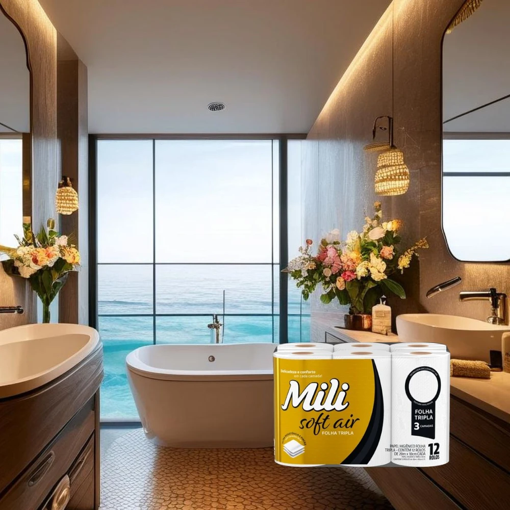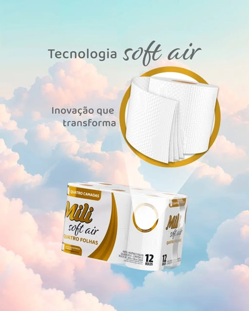 Transforme seus momentos de cuidado pessoal com o Mili Soft Air, o papel higiênico folha tripla que combina tecnologia exclusiva e textura aveludada para oferecer uma experiência única.