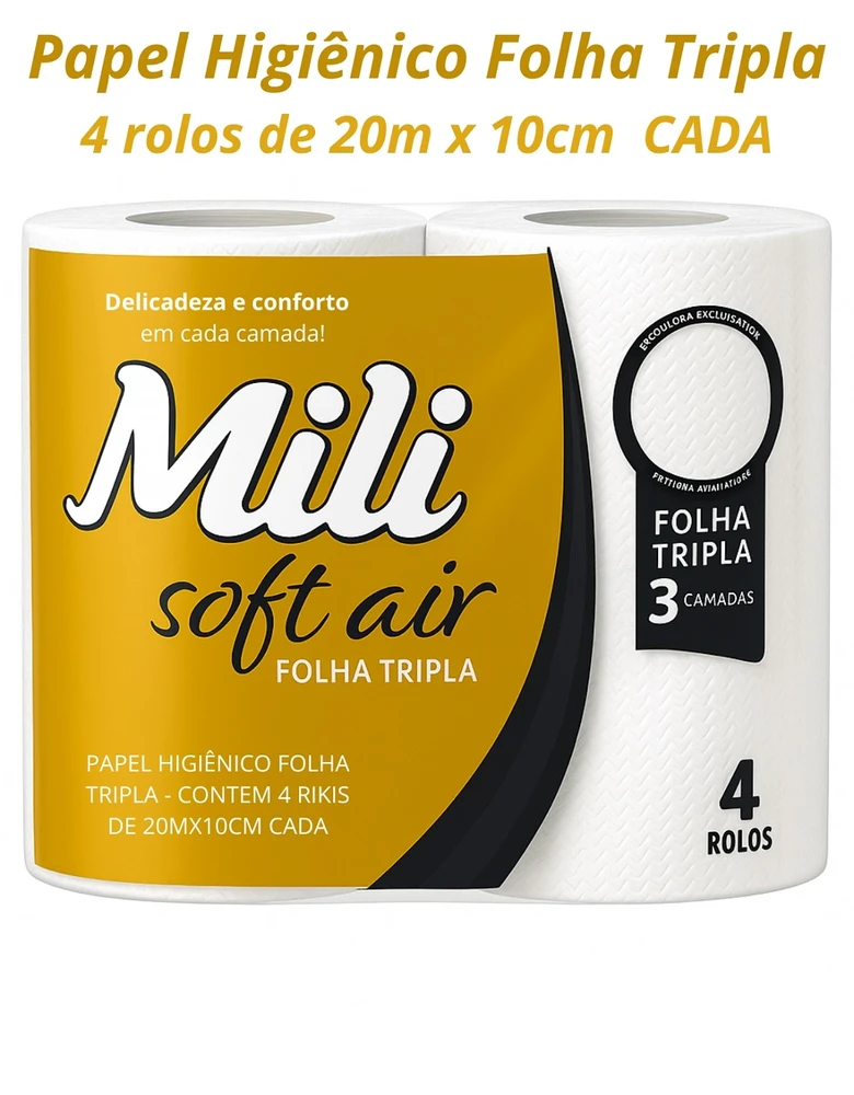 Papel Higiênico Folha Tripla Mili Soft Air Fardo com 4 Rolos (20m x 10cm)