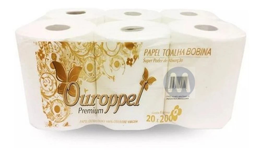 PAPEL TOALHA BOBINA 100% 20CM X 200M X 6 ROLOS OUROPPEL