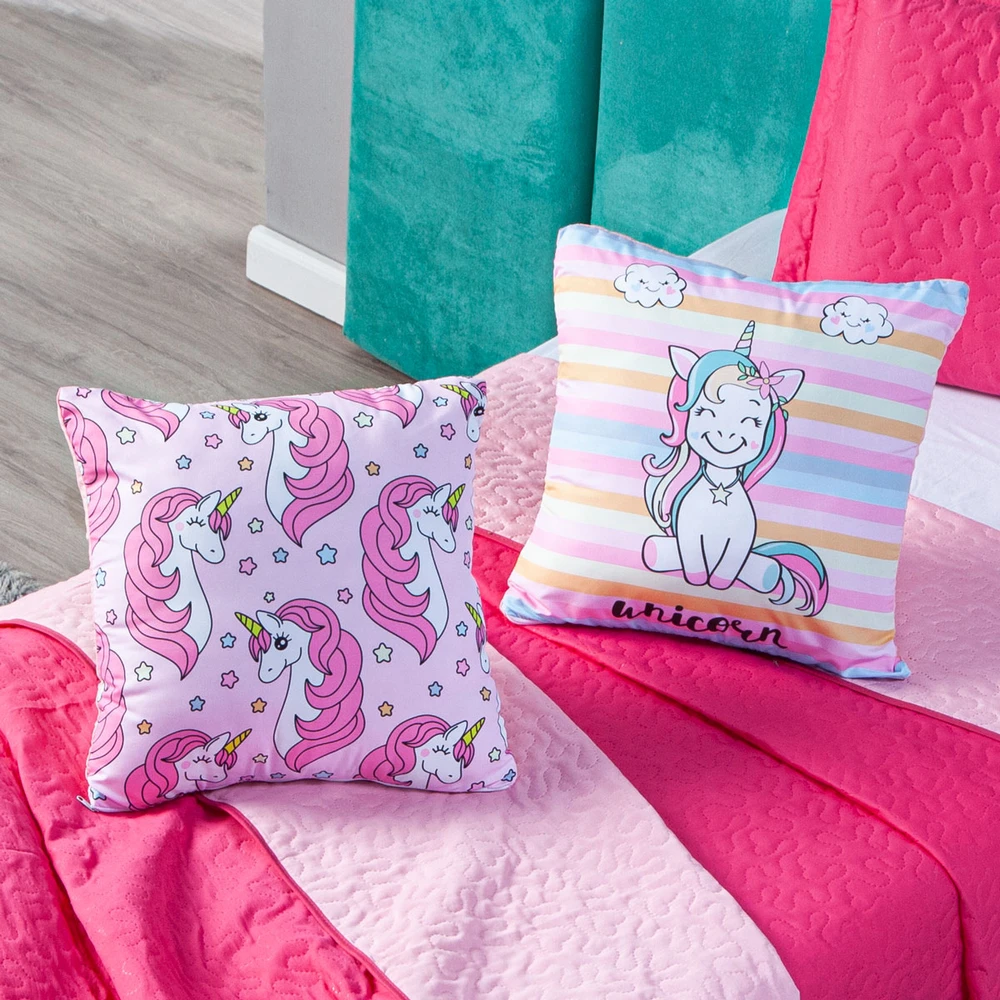 Seja para decorar o quarto de uma fã de unicórnios, dar um toque mágico à sala de estar ou criar um espaço especial, o Par de Almofadas Unicórnio Listrado combina estilo, magia e conforto. Transforme seu ambiente em um refúgio encantado com essas almofadas que trazem o fascínio dos unicórnios para o seu lar. Confira!
