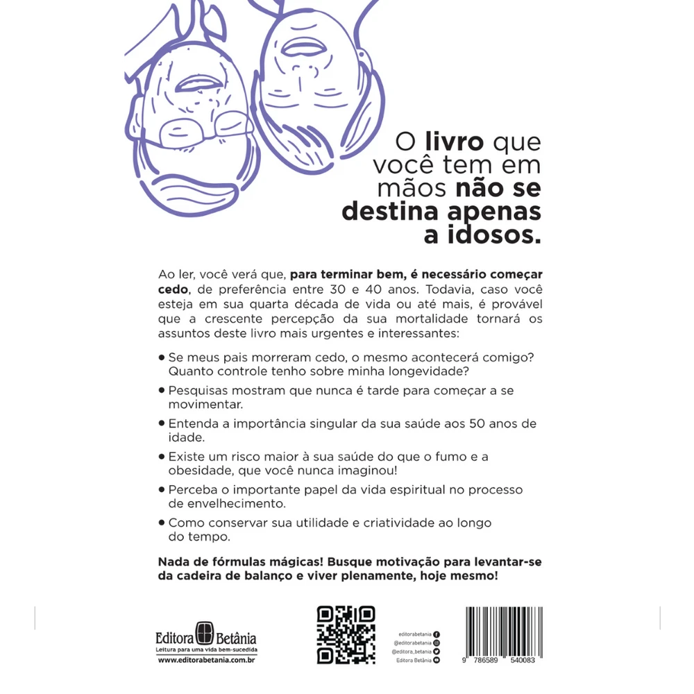 Este livro não se destina apenas a idosos. Ao ler, você verá que, para terminar bem, é necessário começar cedo, de preferência entre 30 e 40 anos. Todavia, caso você esteja em sua quarta década de vida ou até mais, é provável que a crescente percepção da sua mortalidade tornará os assuntos deste livro mais urgentes e interessantes:
