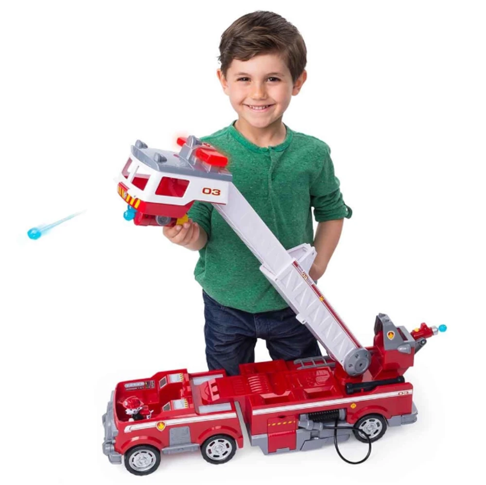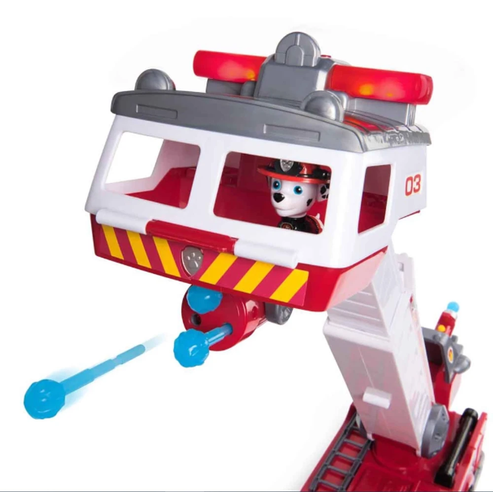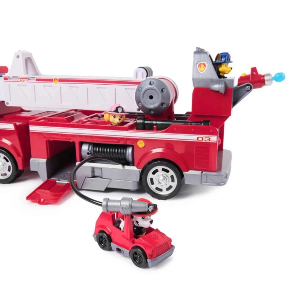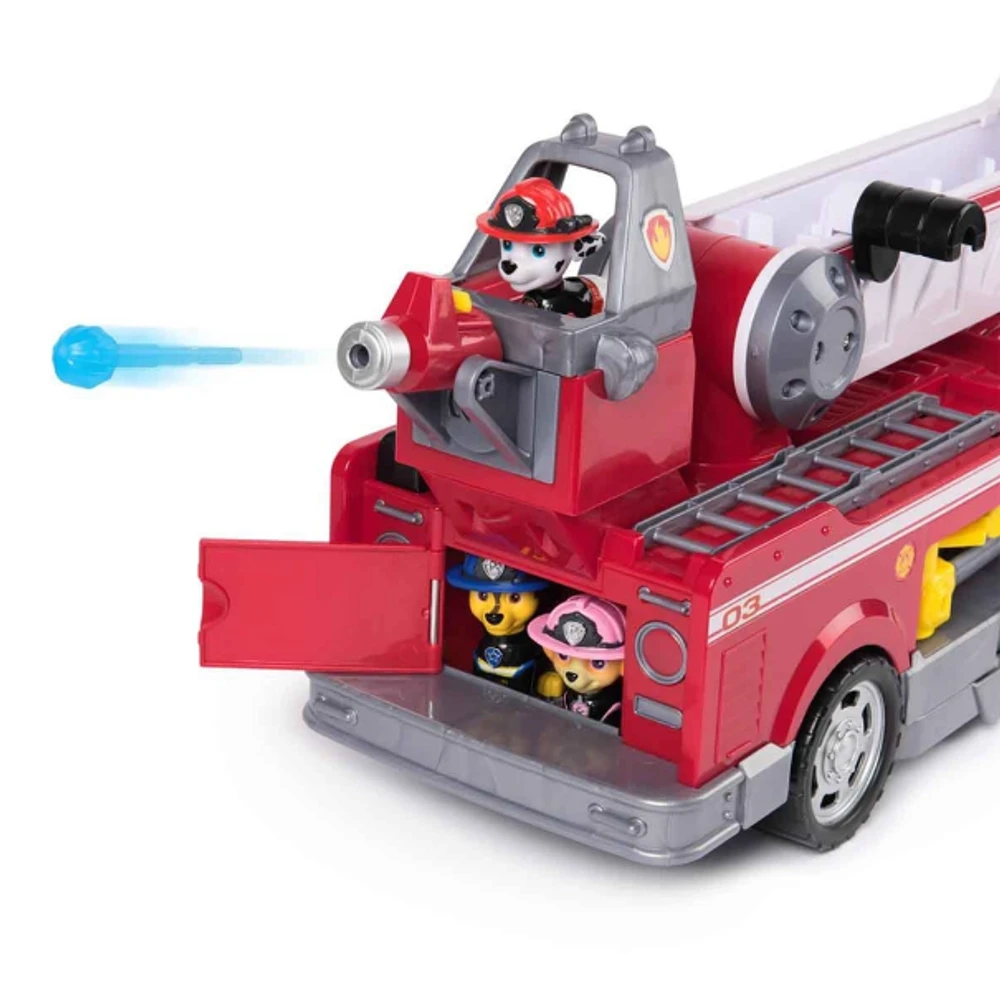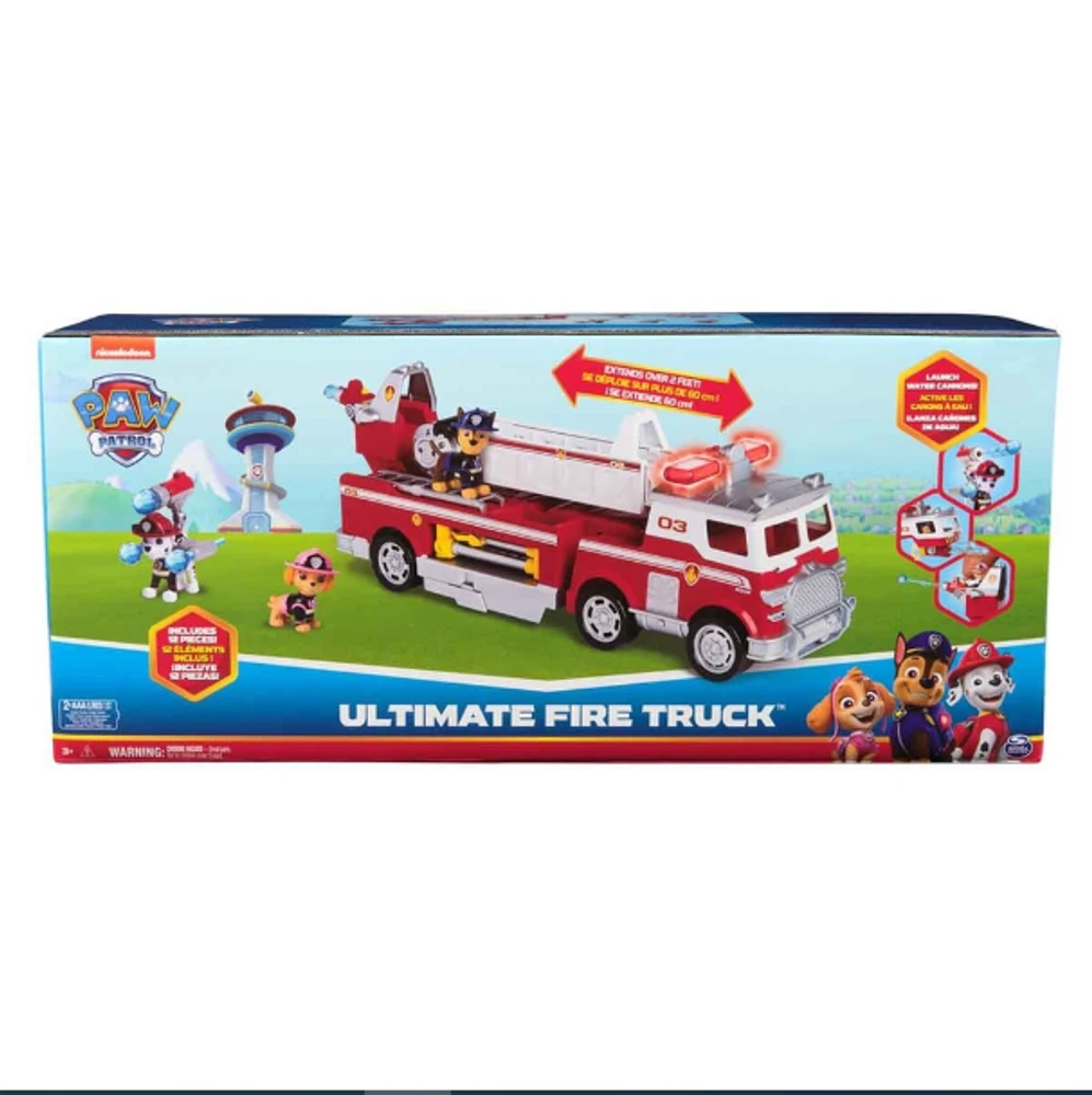 Salve o dia com o Caminhão de Bombeiros Ultimate do Marshall! Equipado com uma escada extensível de 60cm, um mini carrinho de bombeiro, luzes e sons, este caminhão de bombeiros está pronto para missões cheias de ação! Use os lançadores de canhões d'água na frente e na traseira deste veículo para apagar incêndios! O conjunto ainda inclui 3 figuras dos seus filhotes favoritos: Chase, Marshall e Skye.