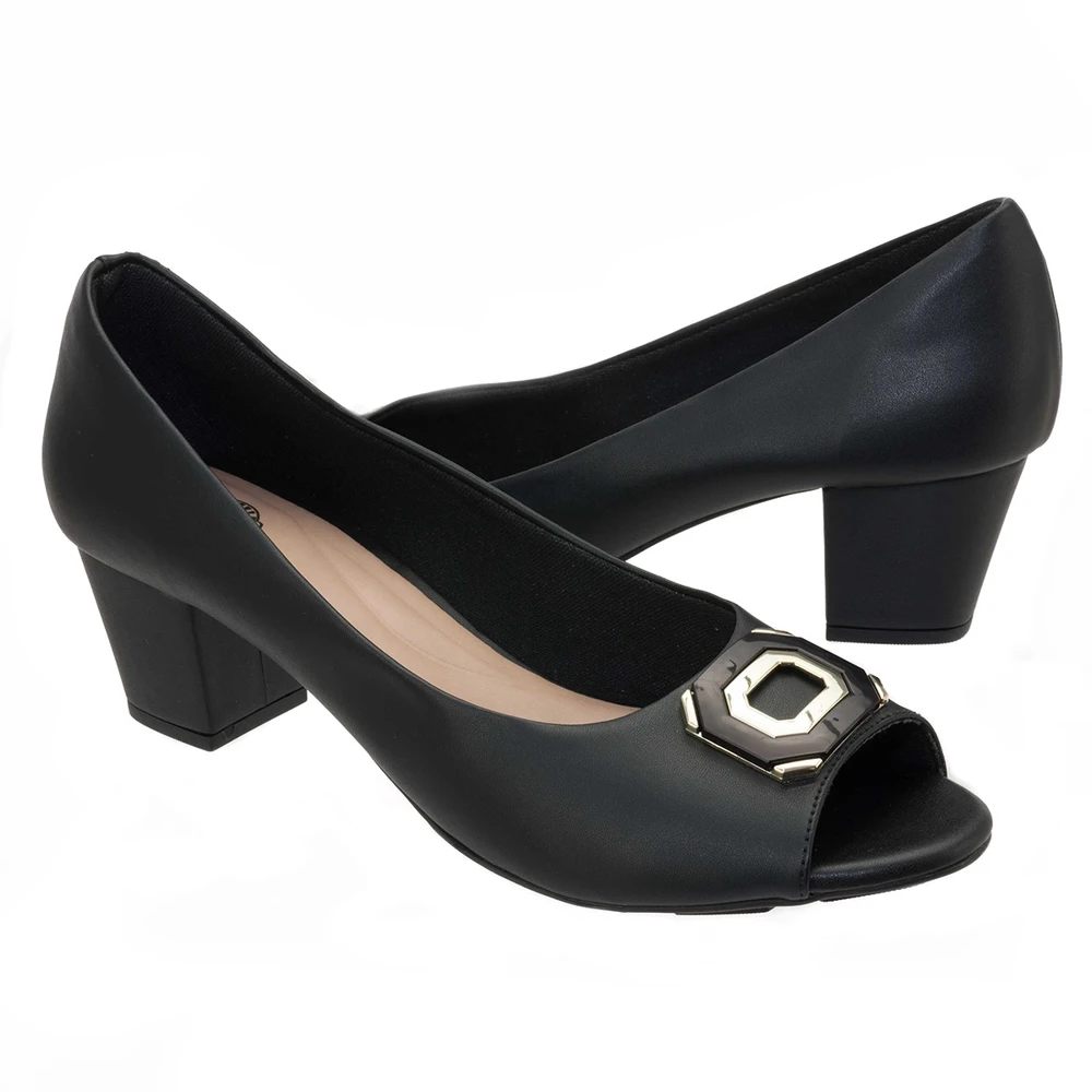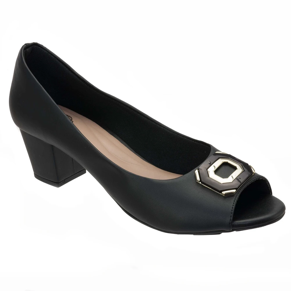Peep Toe em couro ecológico com solado rasteiro em borracha.