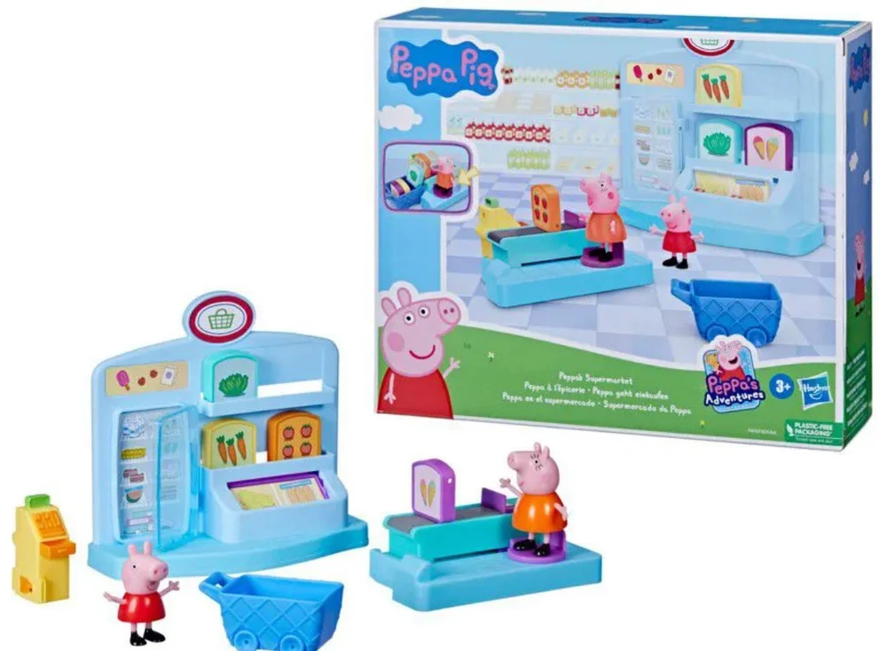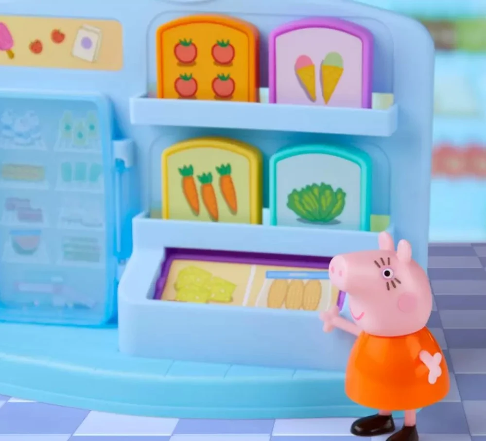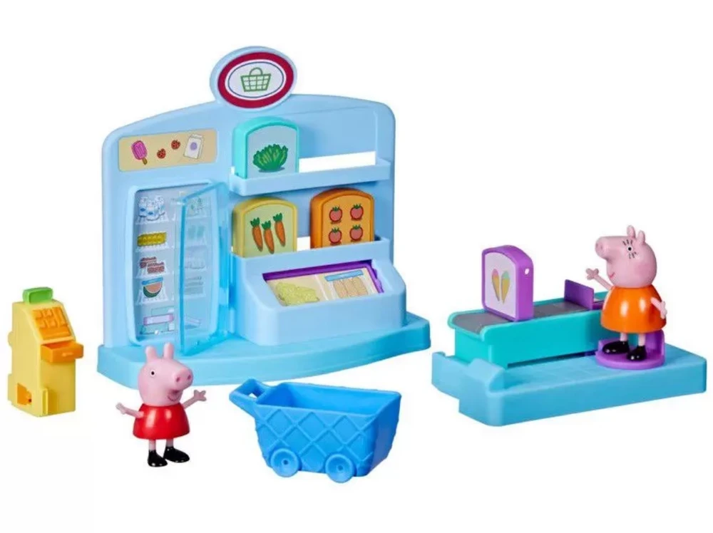 Com o brinquedo Supermercado da Peppa Pig, as crianças podem se imaginar fazendo compras com a personagem e a Mamãe Pig. Vem com 2 bonecos e mais acessórios para que os pequenos simulem que estão em um supermercado. As crianças podem colocar as compras no balcão e a figura no local marcado. Ao empurrar a figura, as compras se movimentam também. Este brinquedo da Hasbro é aprovado pelo Inmetro e indicado para maiores de 3 anos.