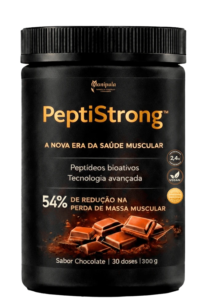 O PeptiStrong™ 2,4 g por dose – 300 g (30 doses) é um ingrediente patenteado composto por uma rede de peptídeos bioativos derivados da proteína da fava, desenvolvidos com auxílio de inteligência artificial.
