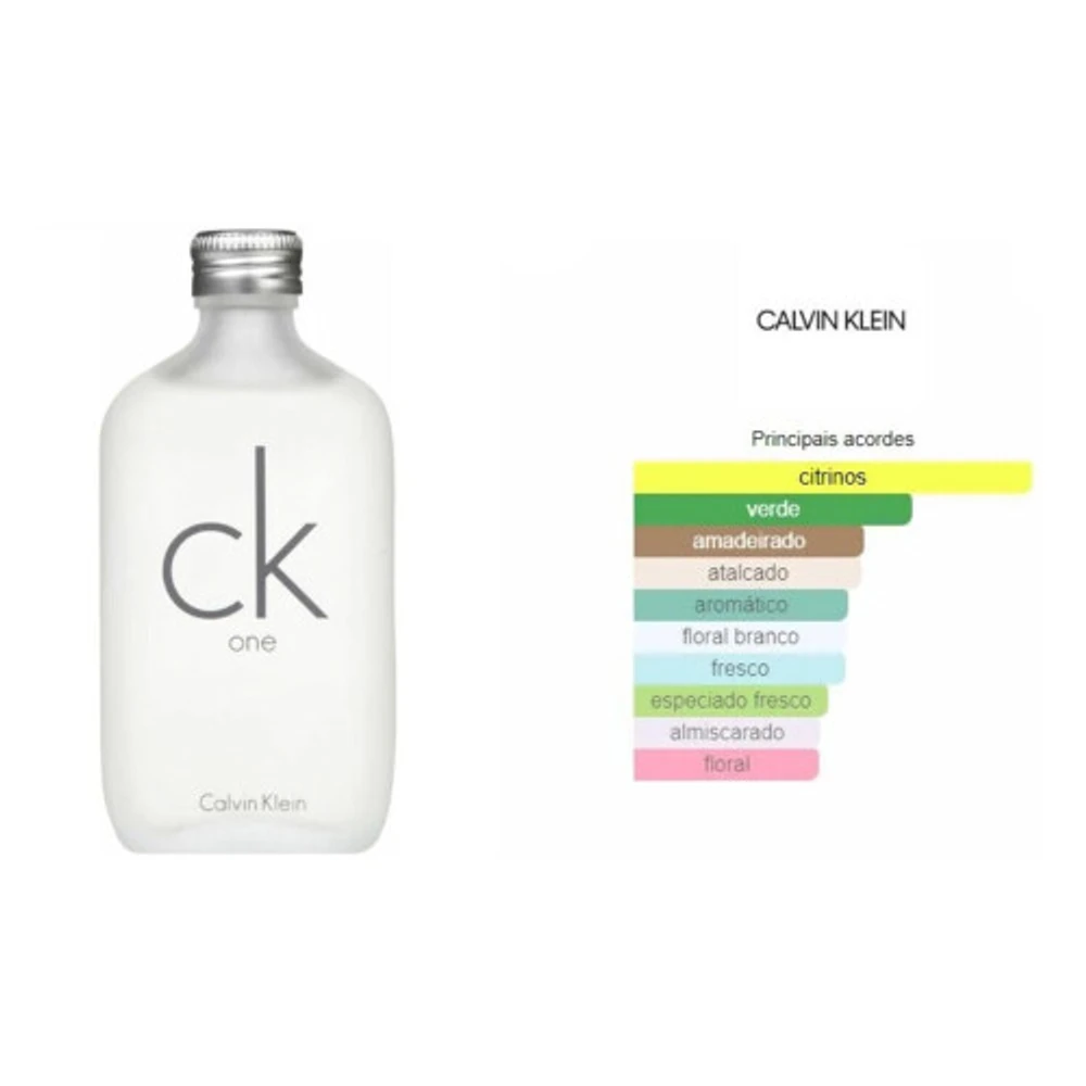 Descubra a essência única do Perfume Calvin Klein Ck One Unissex 100ml, uma fragrância icônica que transcende gêneros e se adapta a todas as personalidades. Ideal para quem busca frescor e leveza, este perfume é perfeito para o dia a dia e ocasiões especiais.Notas Olfativas - Topo: Bergamota, Limão, Mandarina e Cardamomo - Corpo: Jasmim, Rosa, Violetas e Noz Moscada - Fundo: Âmbar, Musgo de Carvalho e CedroA abertura vibrante com notas cítricas de bergamota e limão traz uma explosão refrescante, enquanto o coração floral de jasmim e rosa cria um toque envolvente e sedutor. Por fim, o fundo amadeirado de cedro e âmbar proporciona uma base duradoura e sofisticada.Elegância e Versatilidade Com um design minimalista e elegante, o frasco do CK One é um verdadeiro símbolo de modernidade. Sua versatilidade o torna perfeito para qualquer ocasião, seja um encontro casual ou uma festa sofisticada.Transforme seu cotidiano em uma experiência olfativa inesquecível com o Perfume Calvin Klein Ck One Unissex 100ml. Sinta a liberdade e a autenticidade que apenas essa fragrância pode proporcionar!