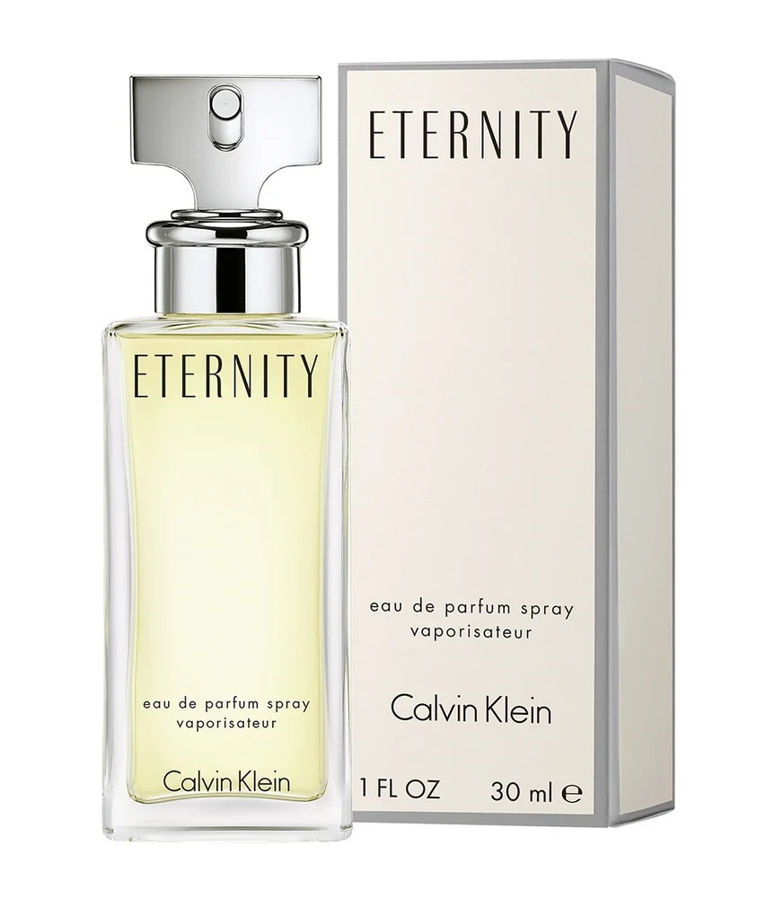 A essência de Eternity Eau de Toilette abre com notas frescas e cítricas de lavanda, bergamota e limão, que despertam os sentidos com suavidade. No coração, acordes florais e aromáticos de jasmim, sálvia e lírio-do-vale conferem uma sensação sofisticada e elegante. A base revela uma combinação amadeirada e almiscarada com patchouli, cedro e âmbar, garantindo uma fixação duradoura e um aroma envolvente que permanece presente ao longo do dia.