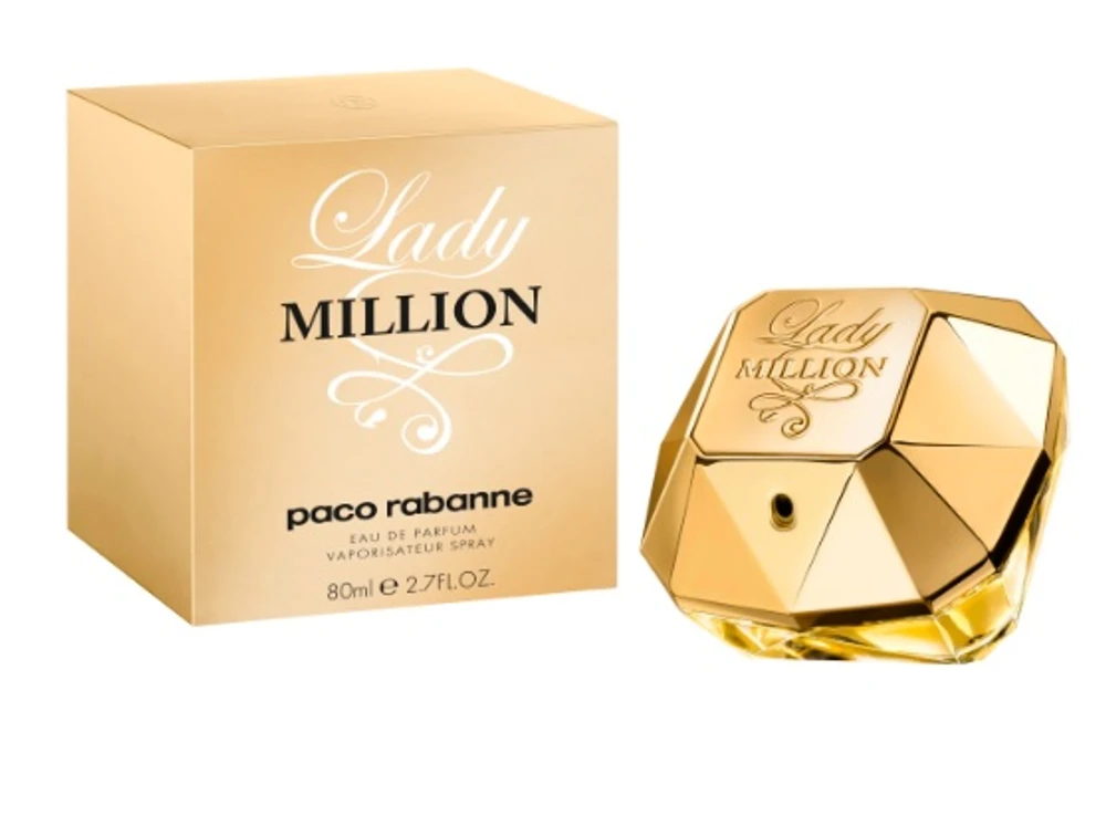 Um perfume feminino de excessos. Excesso de atitude, excesso de glamour, excesso de sedução. Um perfume hiper-feminino inspirado nos vestidos metálicos de Paco Rabanne. O glamour é perceptível logo no frasco, que inspira luxo e modernidade no formato dourado com gravações em relevo e formato de pedra preciosa. Assim, o design esboça exatamente o que o perfume é: uma preciosidade.