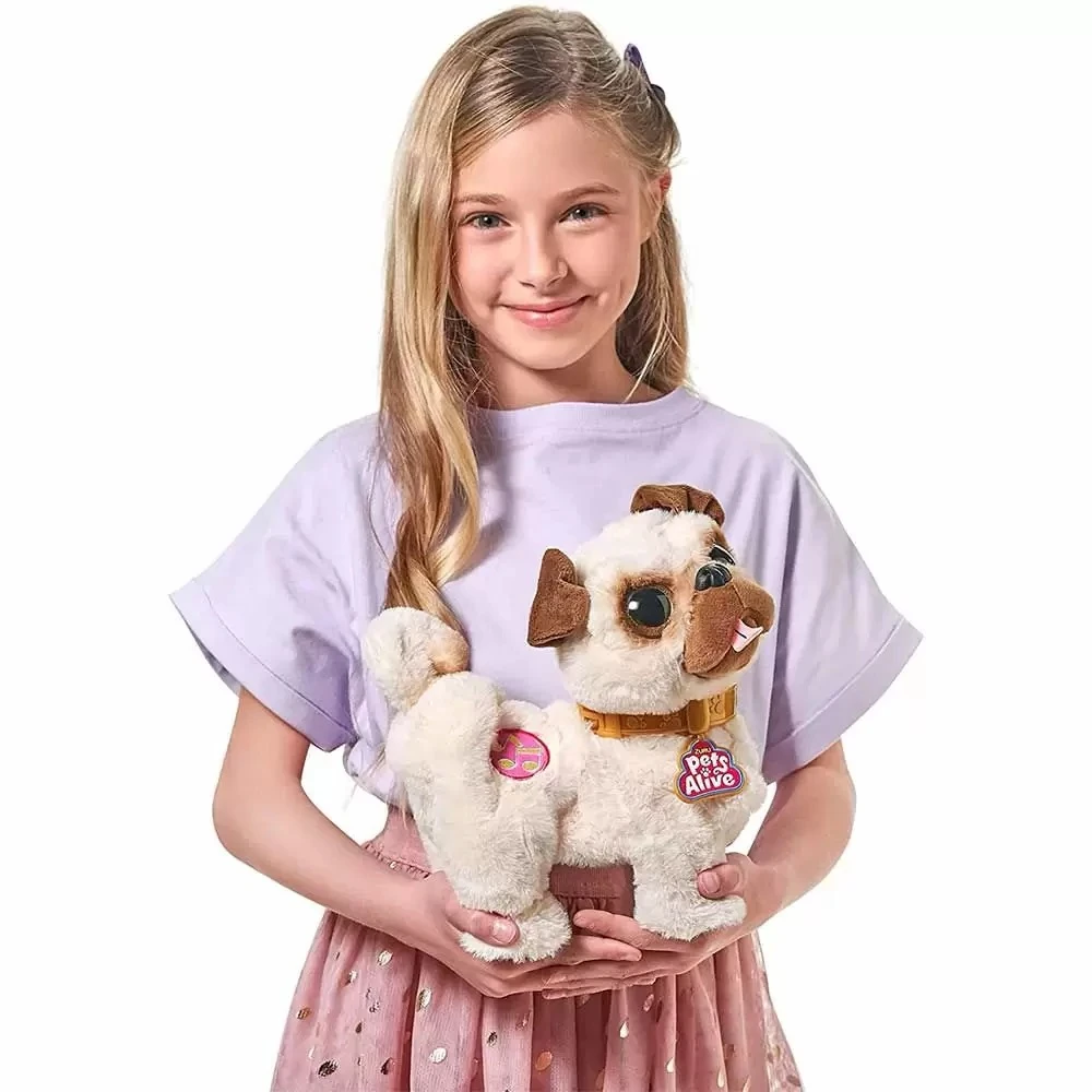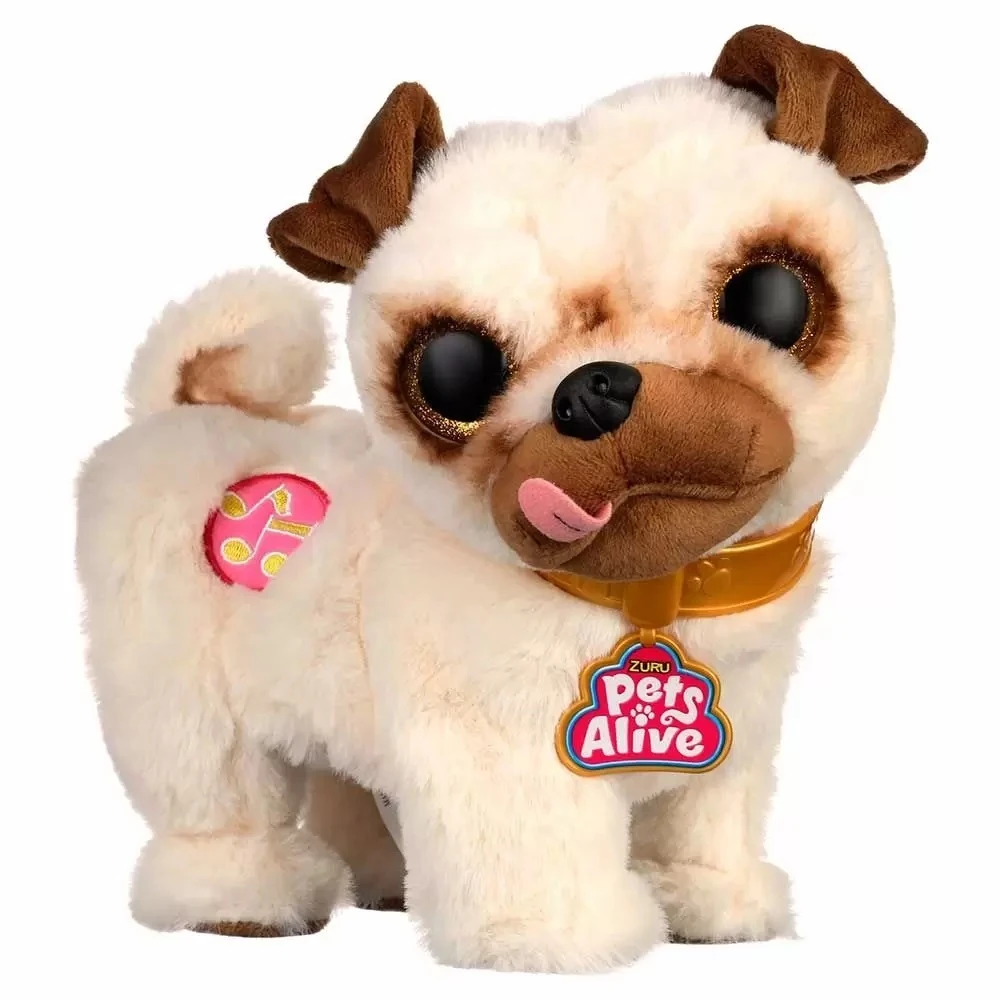 Conheça o Pug Shakin' Booty Pets Alive, o Pug que adora dançar Tem movimentos super divertidos e pode dançar, girar e balançar seu bumbum com 3 músicas Pressione o botão de música do Pug e veja como ele ganha vida dançando conforme a música, fazendo até giros de 360. Com seu design realista fofo e energia contagiante, é impossível para toda a família não se levantar e dançar com Pug