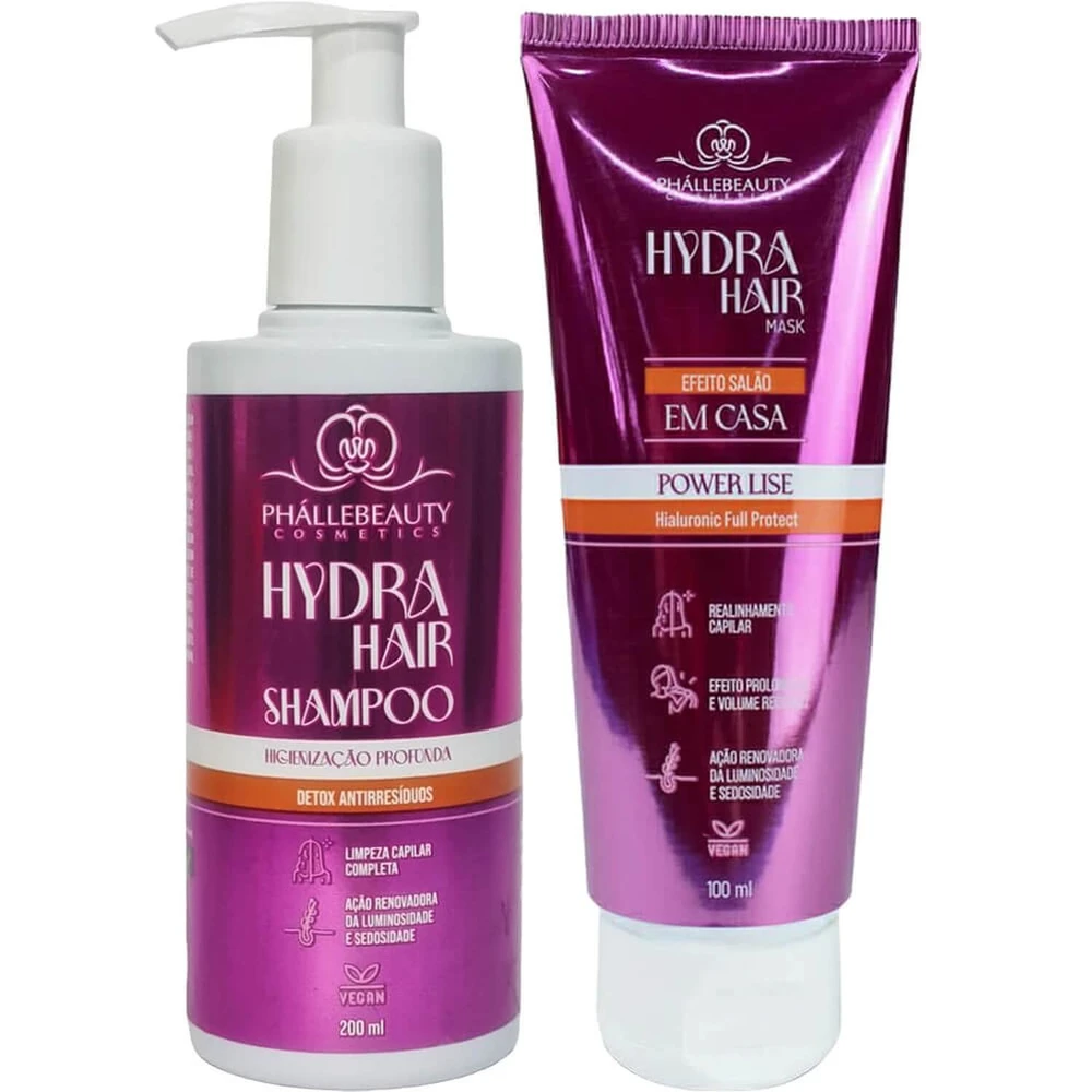 O kit Hydra Hair Phállebeauty é um realinhamento capilar de efeito prolongado com ação de redução de volume e renovação da luminosidade e sedosidade.