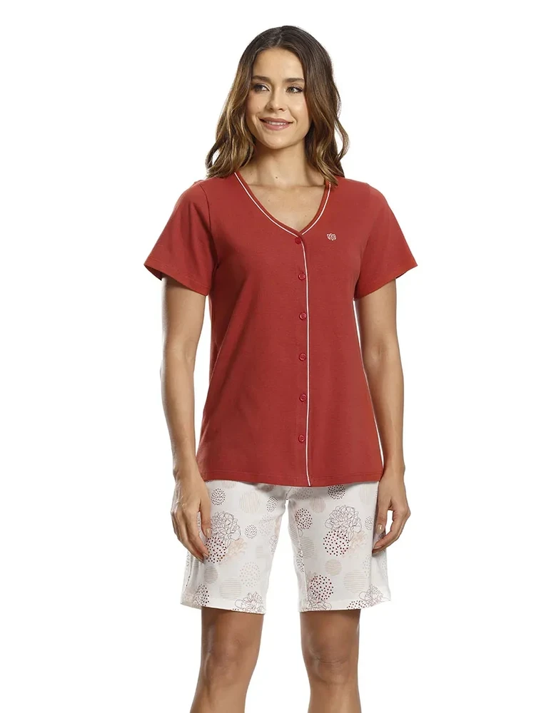 PIJAMA ABERTO MANGA CURTA COM BERMUDA CORAL PAULIENNE